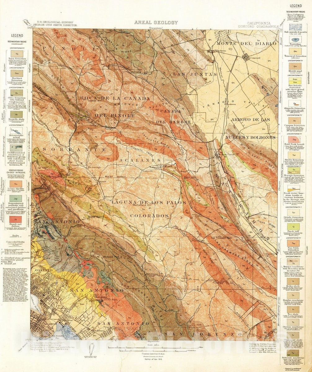 Historic Map : Geologic Atlas - 1913 Concord Quadrangle. Areal Geology. - Vintage Wall Art