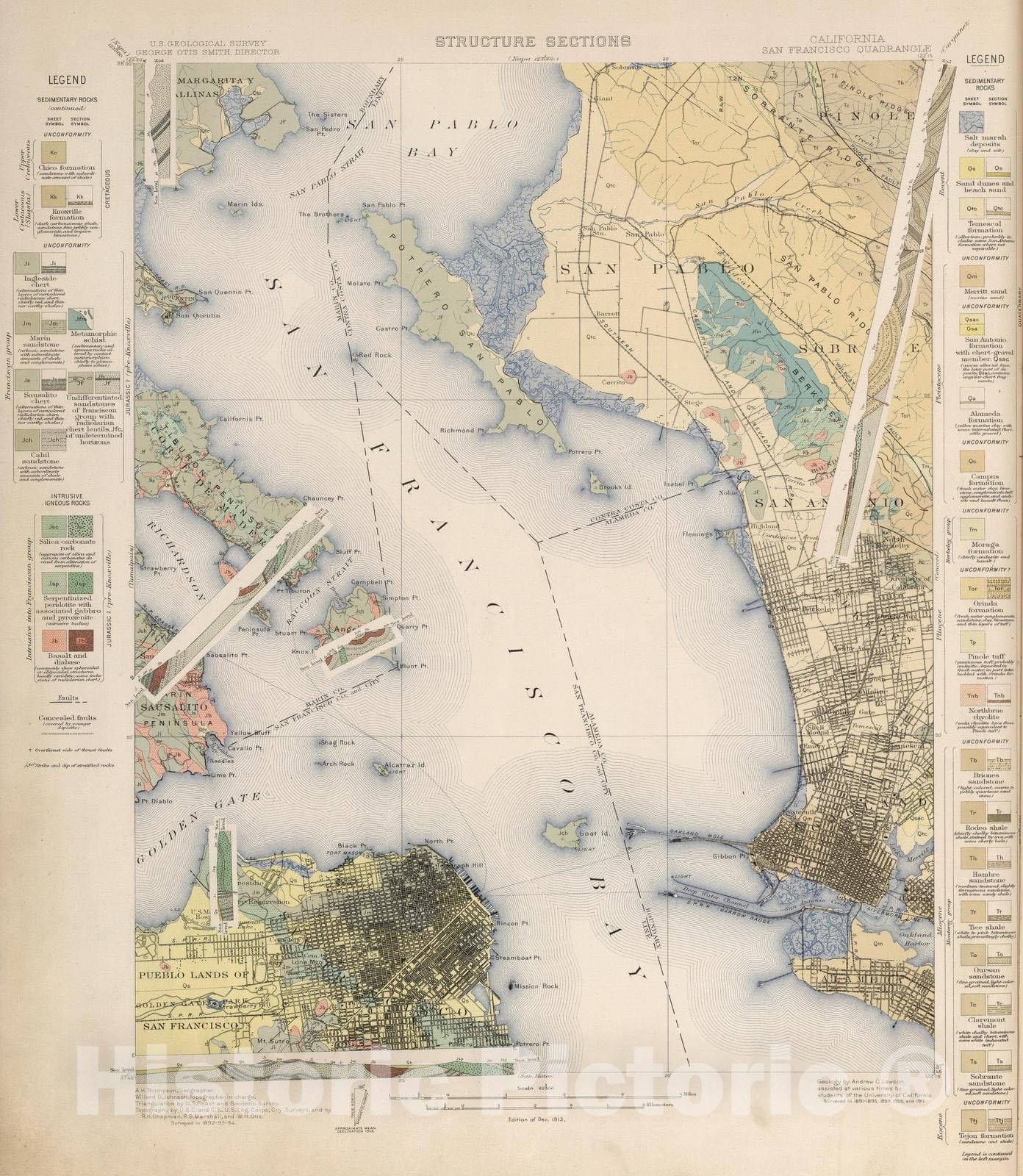 Historic Map : Geologic Atlas - 1913 San Francisco Quadrangle. Structure Sections. - Vintage Wall Art