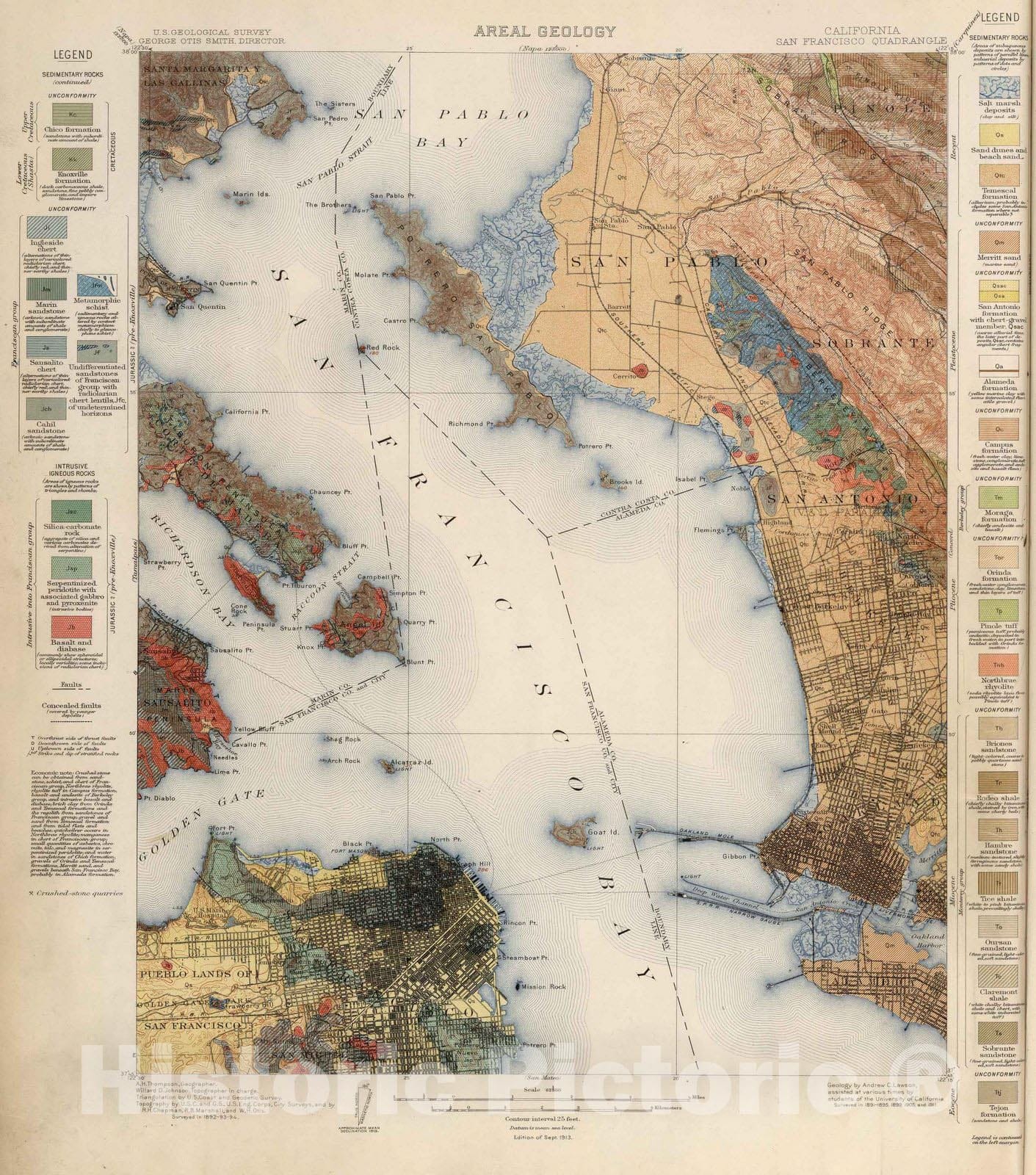 Historic Map : Geologic Atlas - 1913 San Francisco Quadrangle. Areal Geology. - Vintage Wall Art