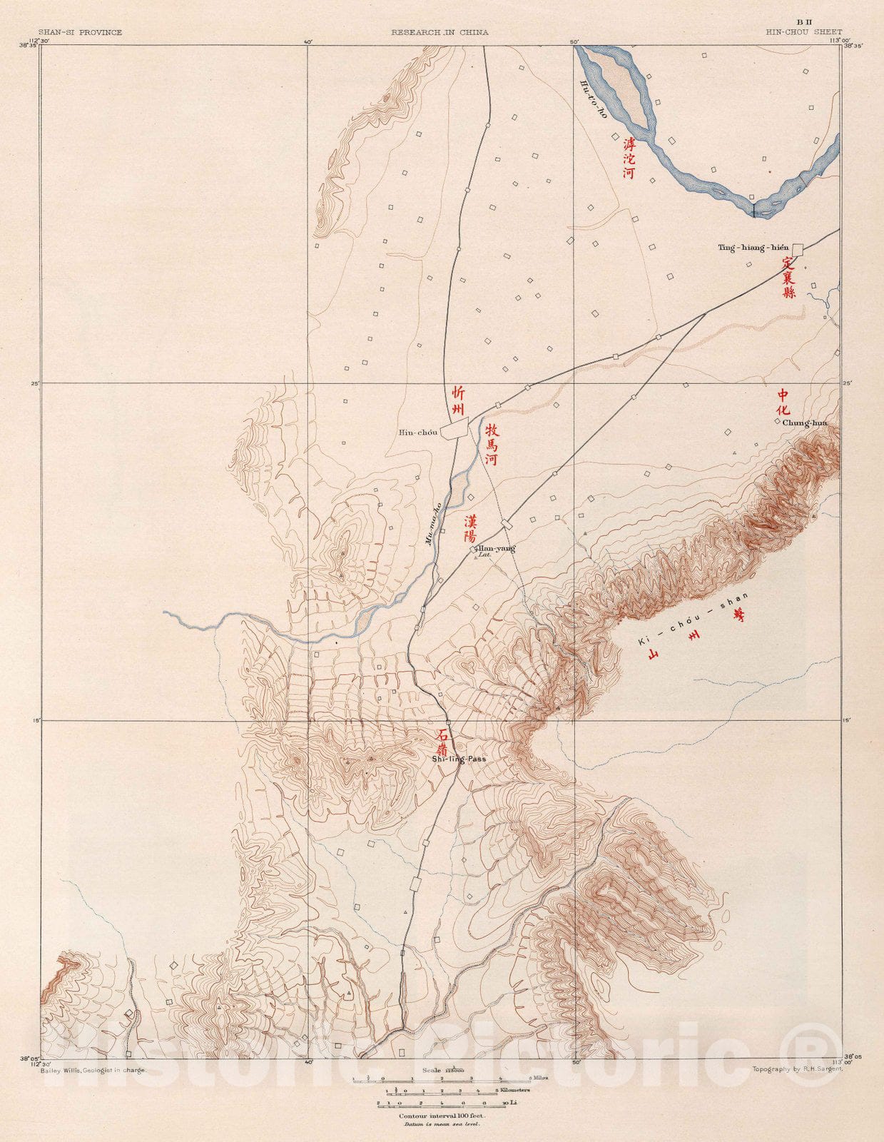 B-II. Hin-Chou Sheet. | Research in China. 1903-1904. Geographical and Geological Maps. Bailey Willis, Geologist in Charge. Published by the Carnegie Institution of Washington. Includes several superb landscape photos. | A very early survey expedition in China. Includes several superb landscape photos.