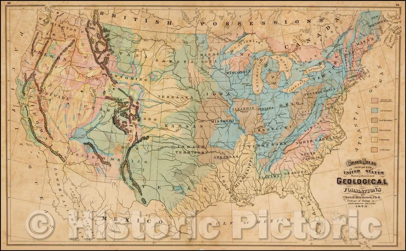 Historic Map - Gray's Map of the United States Showing the Principal Geological Formations, 1873, O.W. Gray & Son v3
