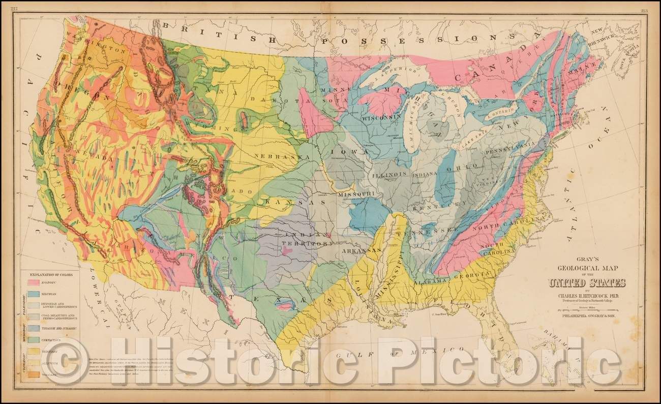 Historic Map - Gray's Map of the United States Showing the Principal Geological Formations, 1873, O.W. Gray & Son v2