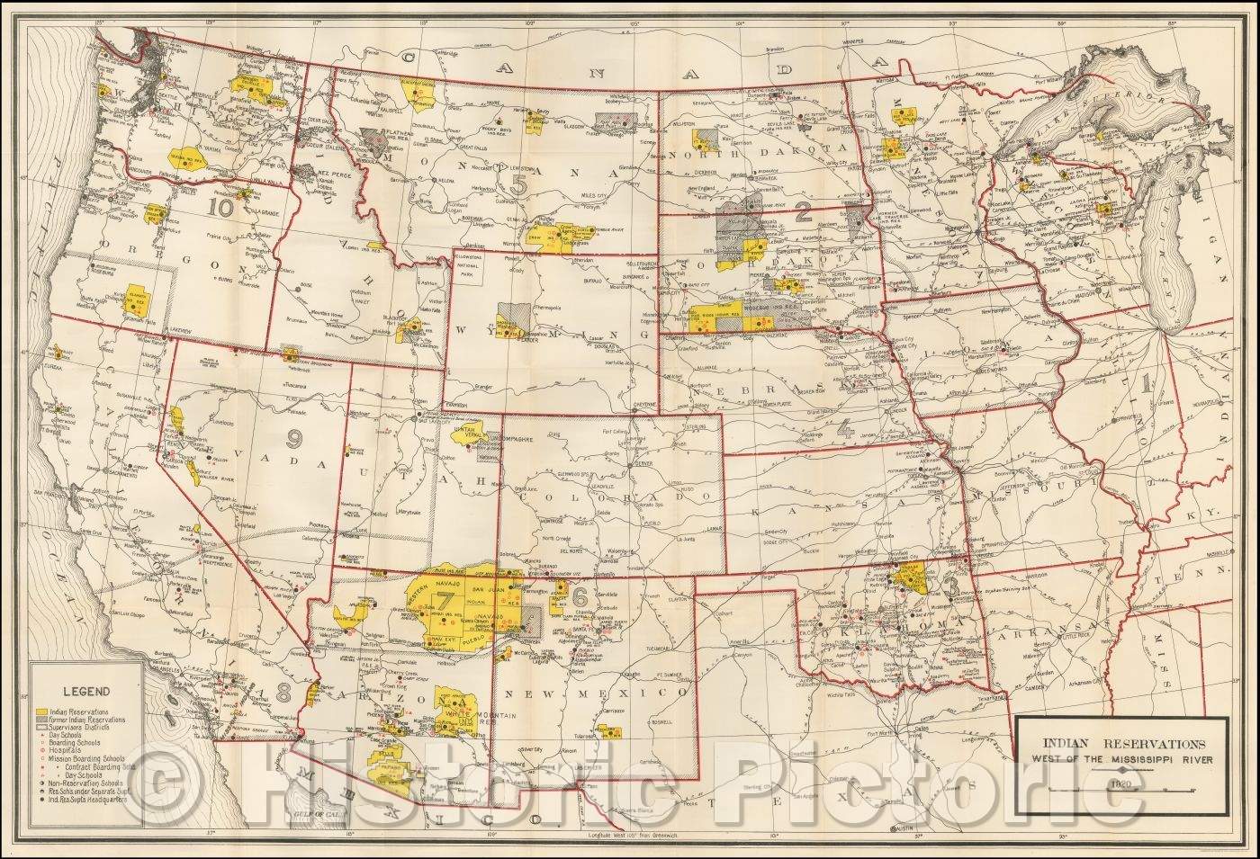 • .Historic Map - Indian Reservations West of the Mississippi River, 1919, U.S. Geological Survey - Vintage Wall Art
