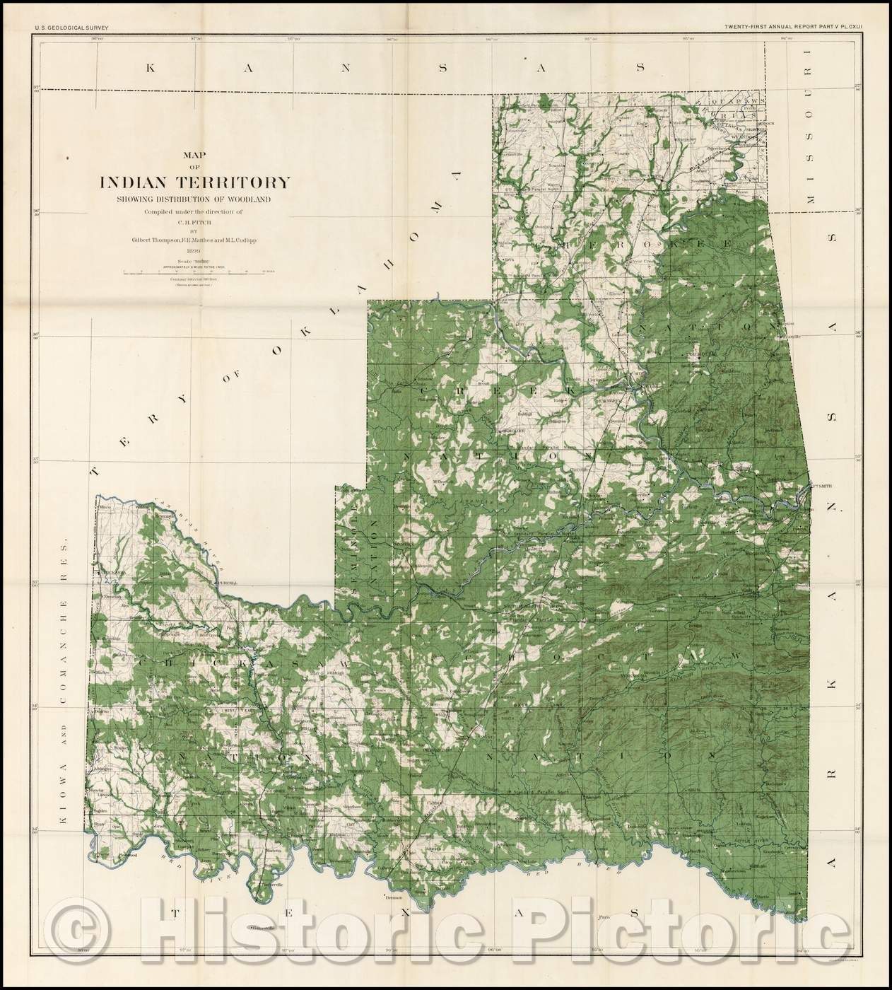 Historic Map - Map of Indian Territory, Showing Distribution of Woodland, 1899, U.S. Geological Survey - Vintage Wall Art