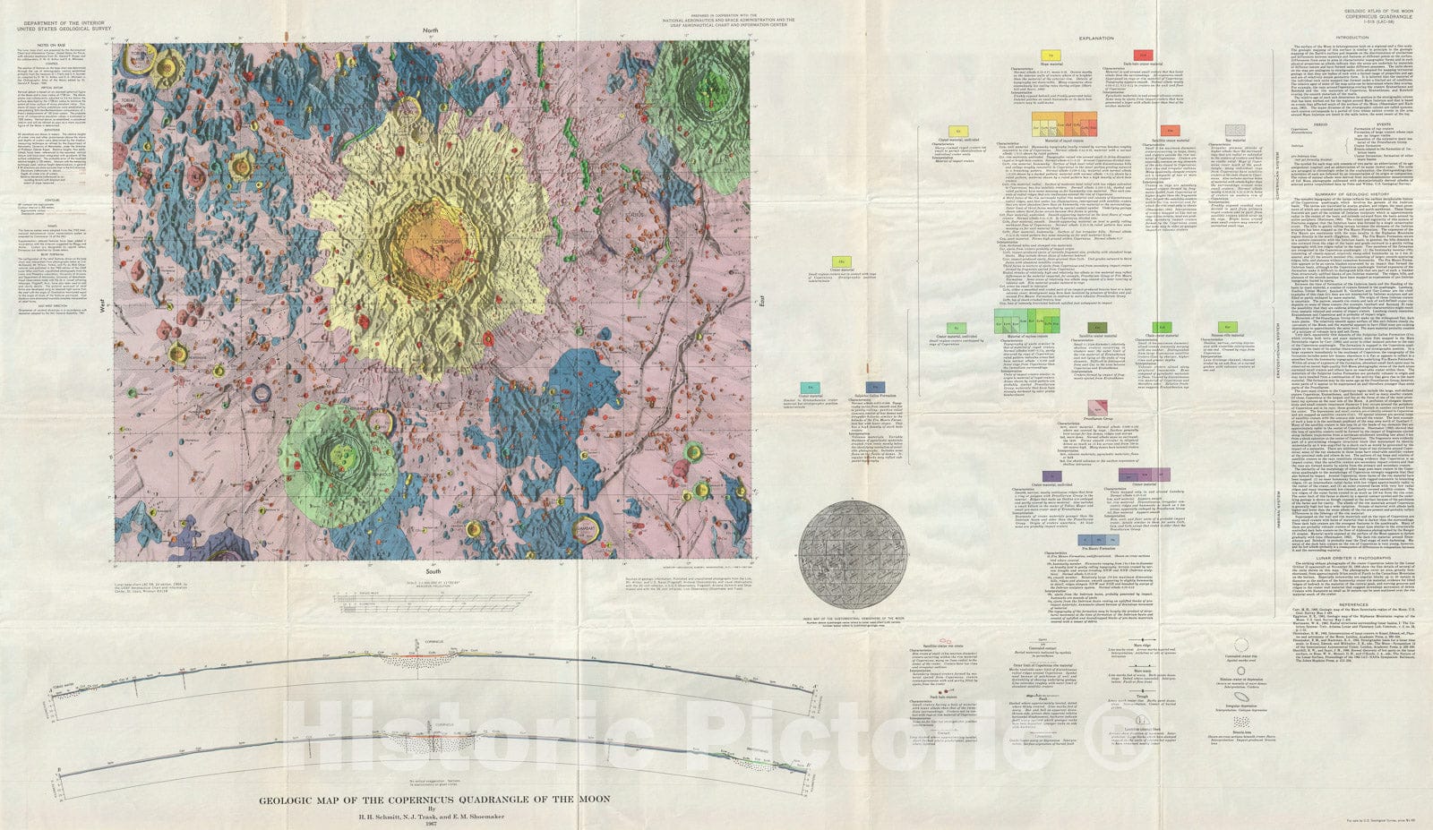 Historic Map : The Moon: Copernicus Crater Quadrangle, USGS Geologic, 1967, Vintage Wall Art