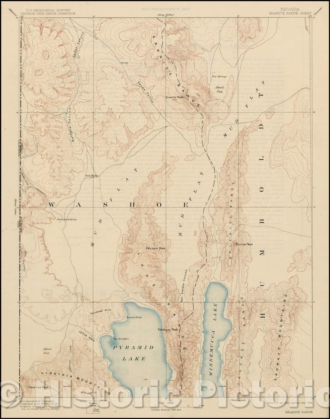 • .Historic Map - Nevada Granite Range Sheet, 1908, U.S. Geological Survey - Vintage Wall Art