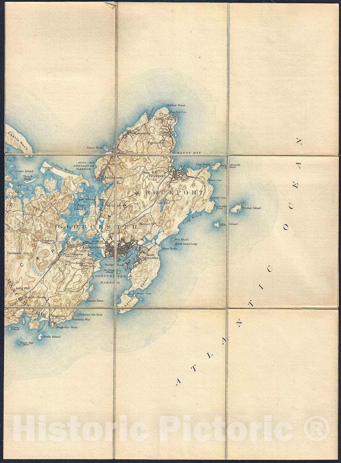 Historic Map : Pocket Map Version of The U.S. Geological Survey Map of Gloucester and Rockport, Massachusetts , 1887, Vintage Wall Art