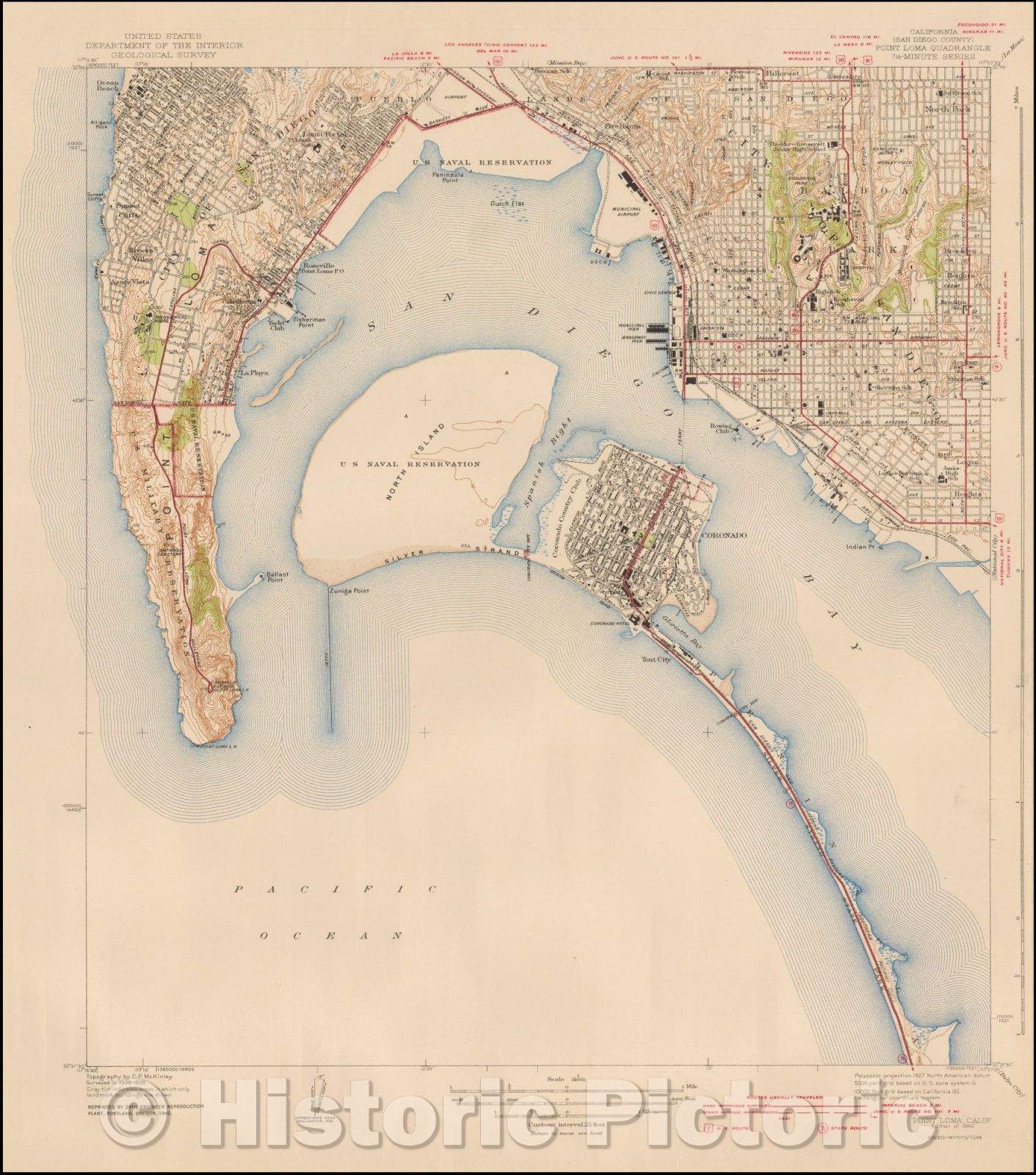 Historic Map - Point Loma Quadrangle 7 1/2-Minute Series, 1942, U.S. Geological Survey - Vintage Wall Art
