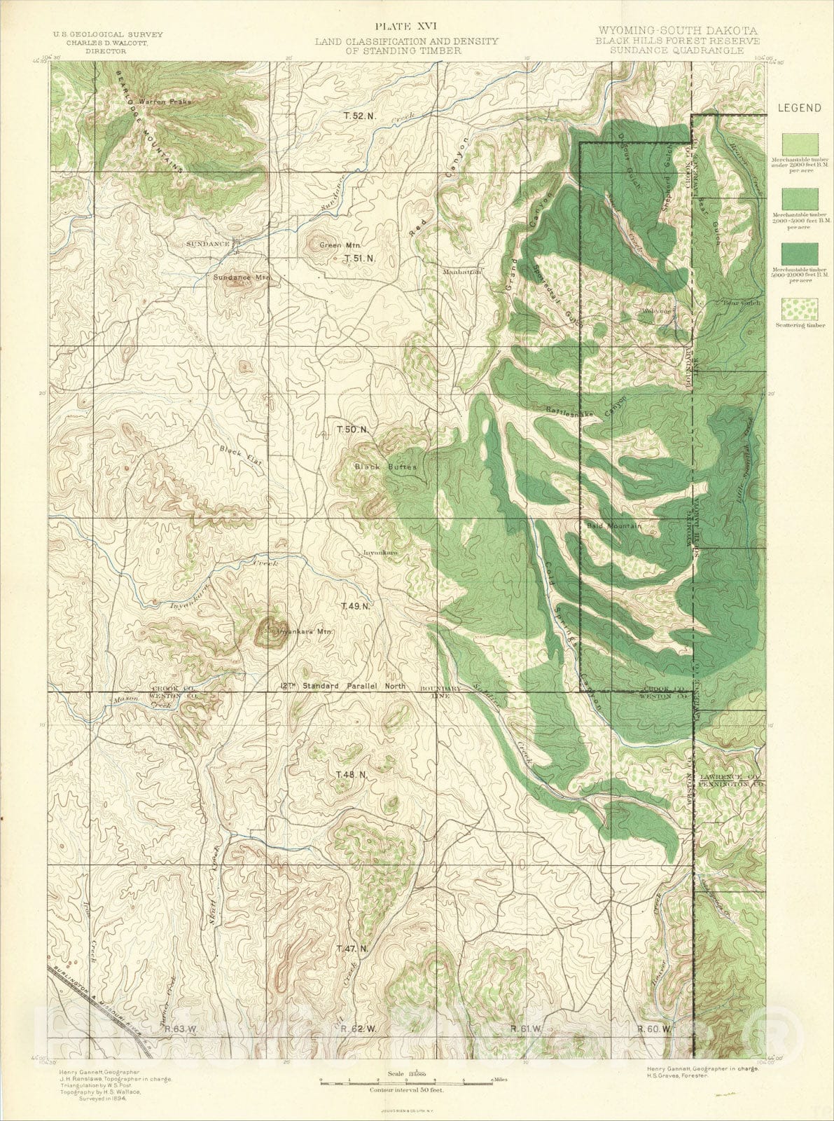 Historic Map : Sundance Quadrangle -- Wyoming - South Dakota Black Hills Forest Reserve, 1894, U.S. Geological Survey, Vintage Wall Art
