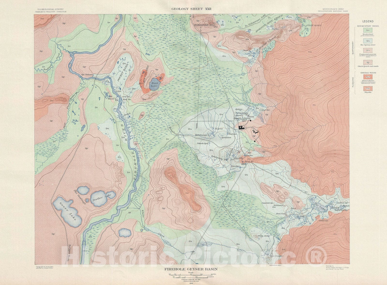 USGS Geologic Firehole Geyser Basin, Yellowstone National Park, 1904