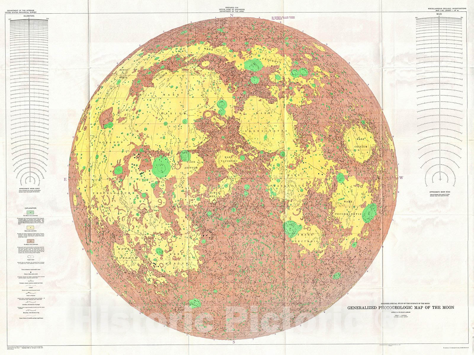 Historic Map : U.S.G.S. Photogeologic Map of The Moon (Wall map), Landmark Lunar map &, 1961, Vintage Wall Art