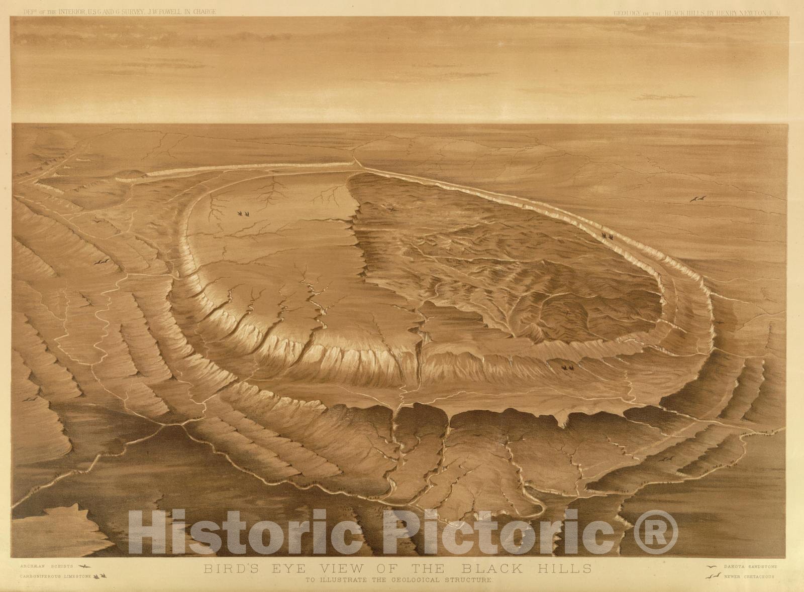 Historic Wall Map : Exploration Book - 1879 Bird's eye view of the Black Hills to illustrate the geological structure. - Vintage Wall Art