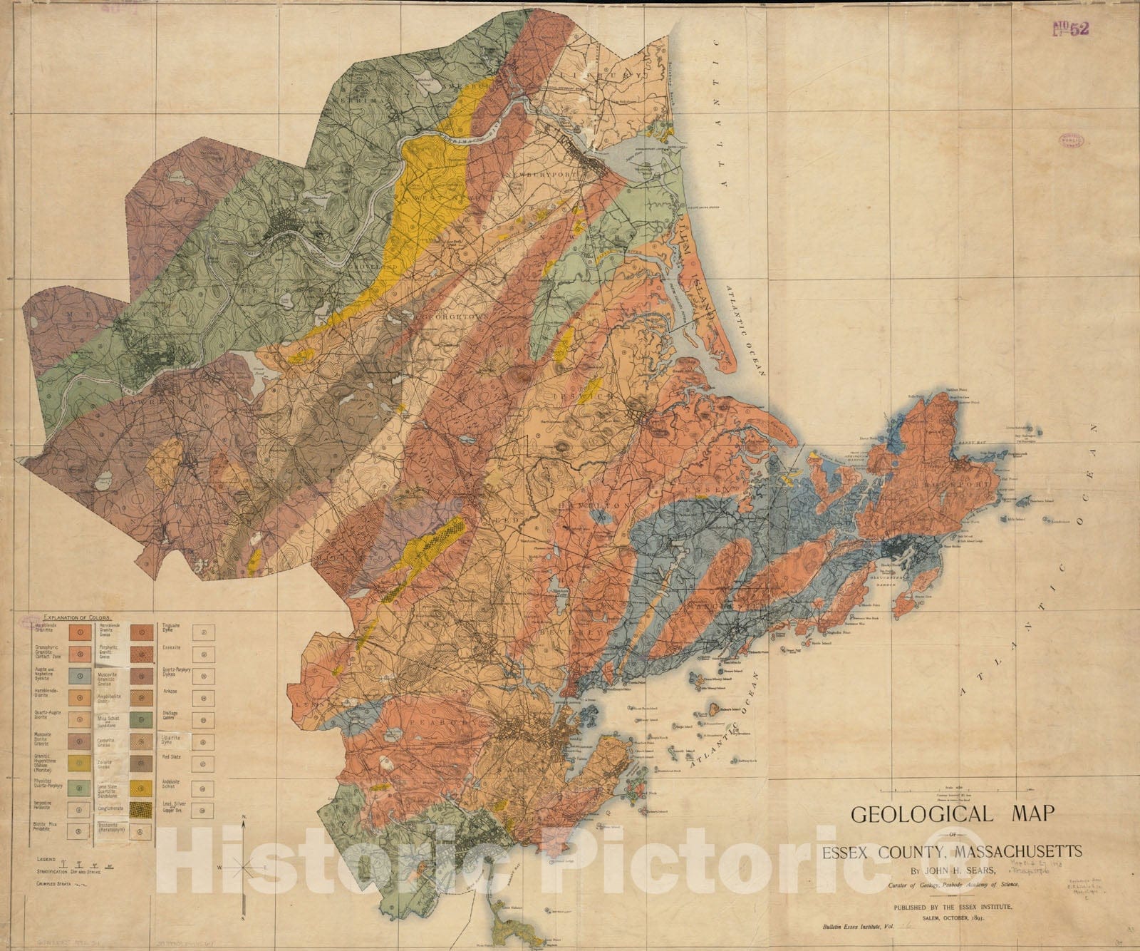 Historical Map, 1893 Geological map of Essex County, Massachusetts, Vintage Wall Art