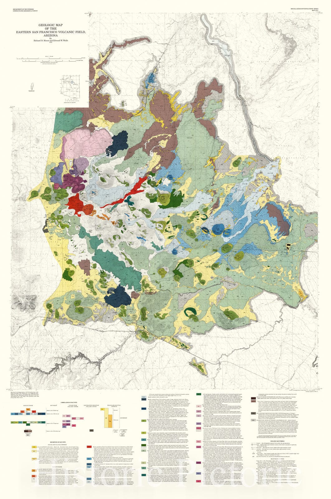 Map : Arizona 1976, Geologic map of the eastern San Francisco Volcanic Field, Arizona , Antique Vintage Reproduction