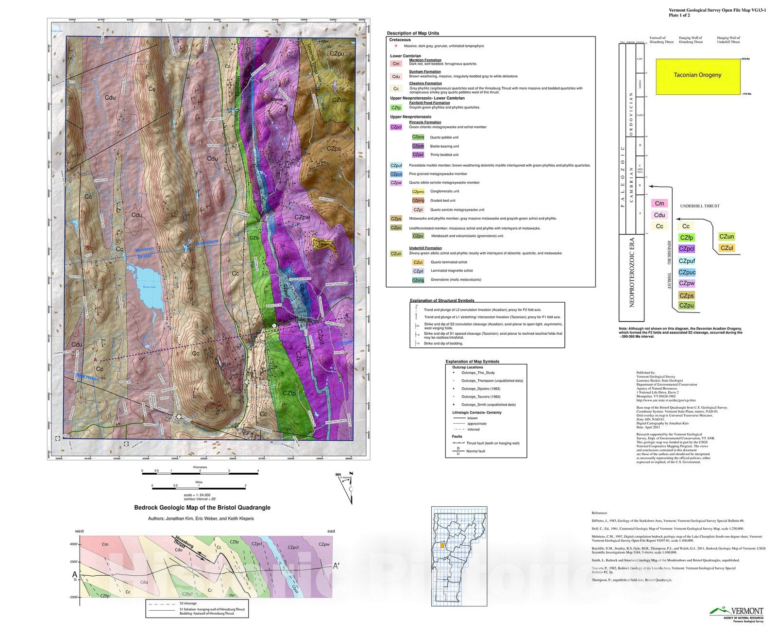 Map : Bedrock geologic map of the Bristol, VT quadrangle, 2013 Cartography Wall Art :