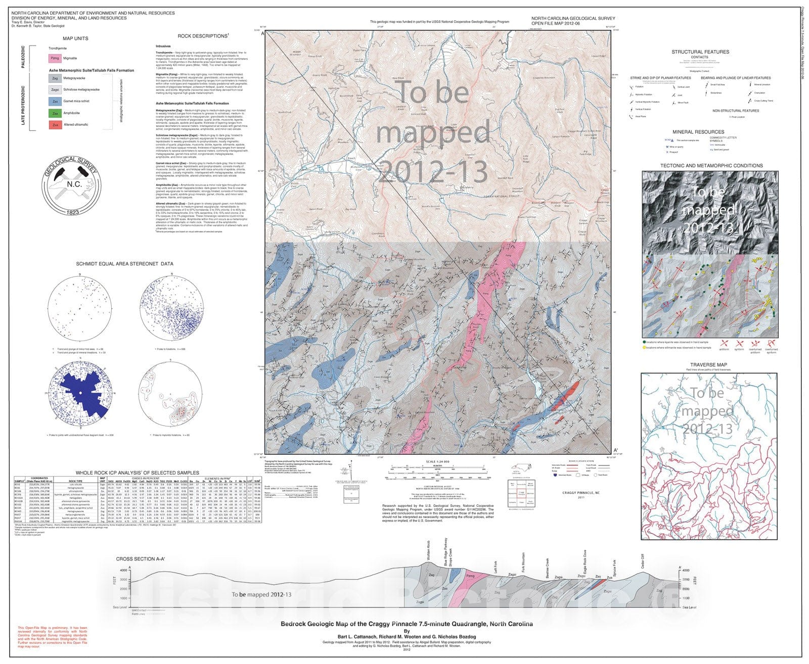 Map : Bedrock geologic map of the Craggy Pinnacle 7.5-minute Quadrangle, North Carolina , 2012 Cartography Wall Art :