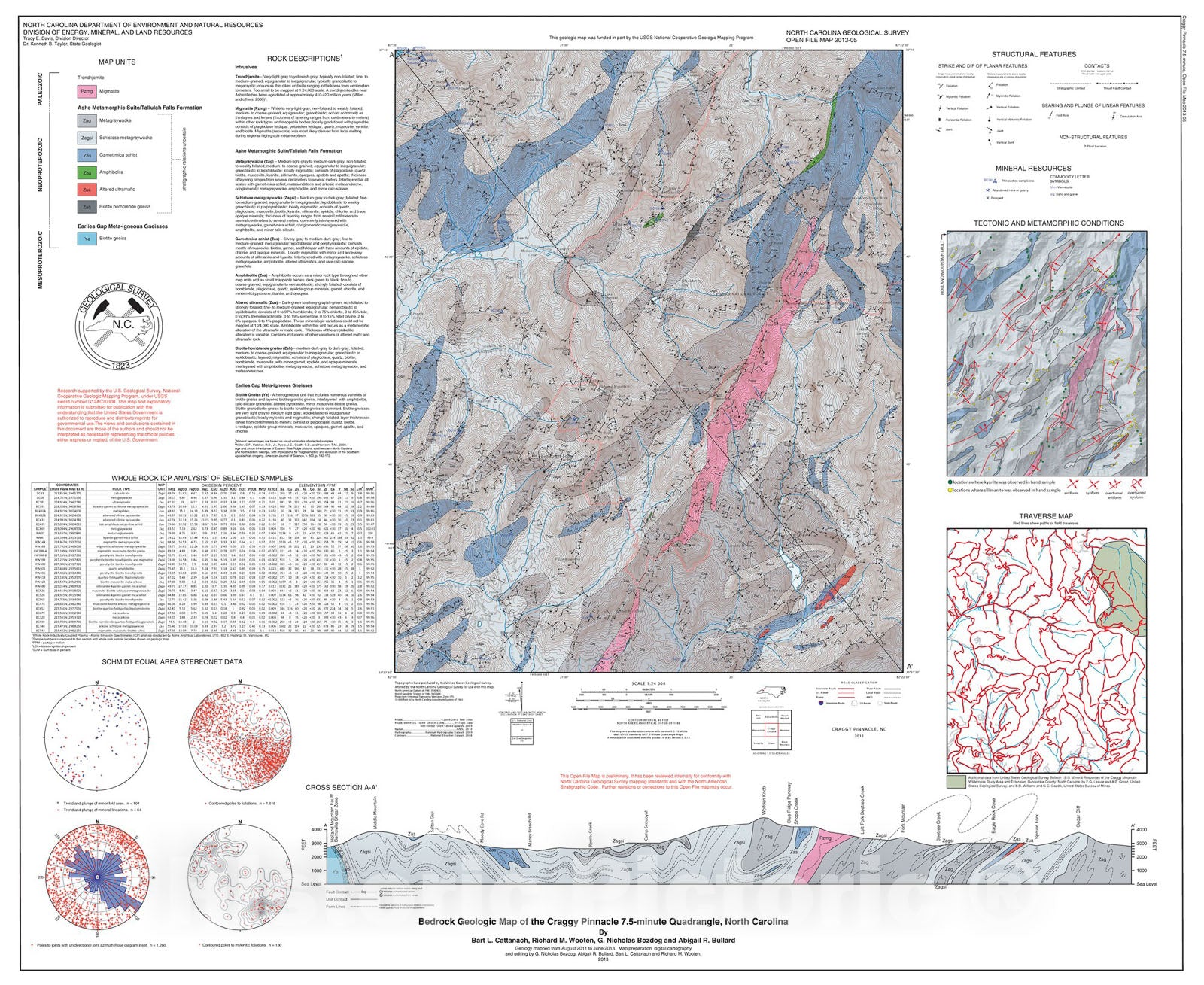 Map : Bedrock Geologic Map of the Craggy Pinnacle 7.5-minute Quadrangle, North Carolina, 2013 Cartography Wall Art :