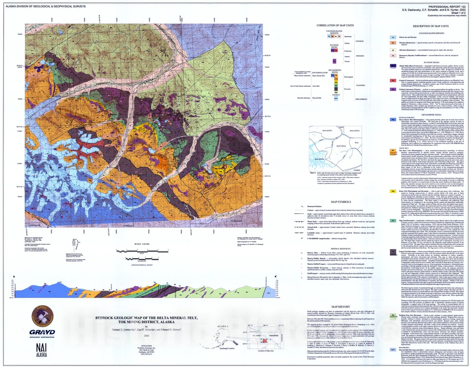 Map : Bedrock geologic map of the Delta mineral belt, Tok mining district, Alaska, 2003 Cartography Wall Art :