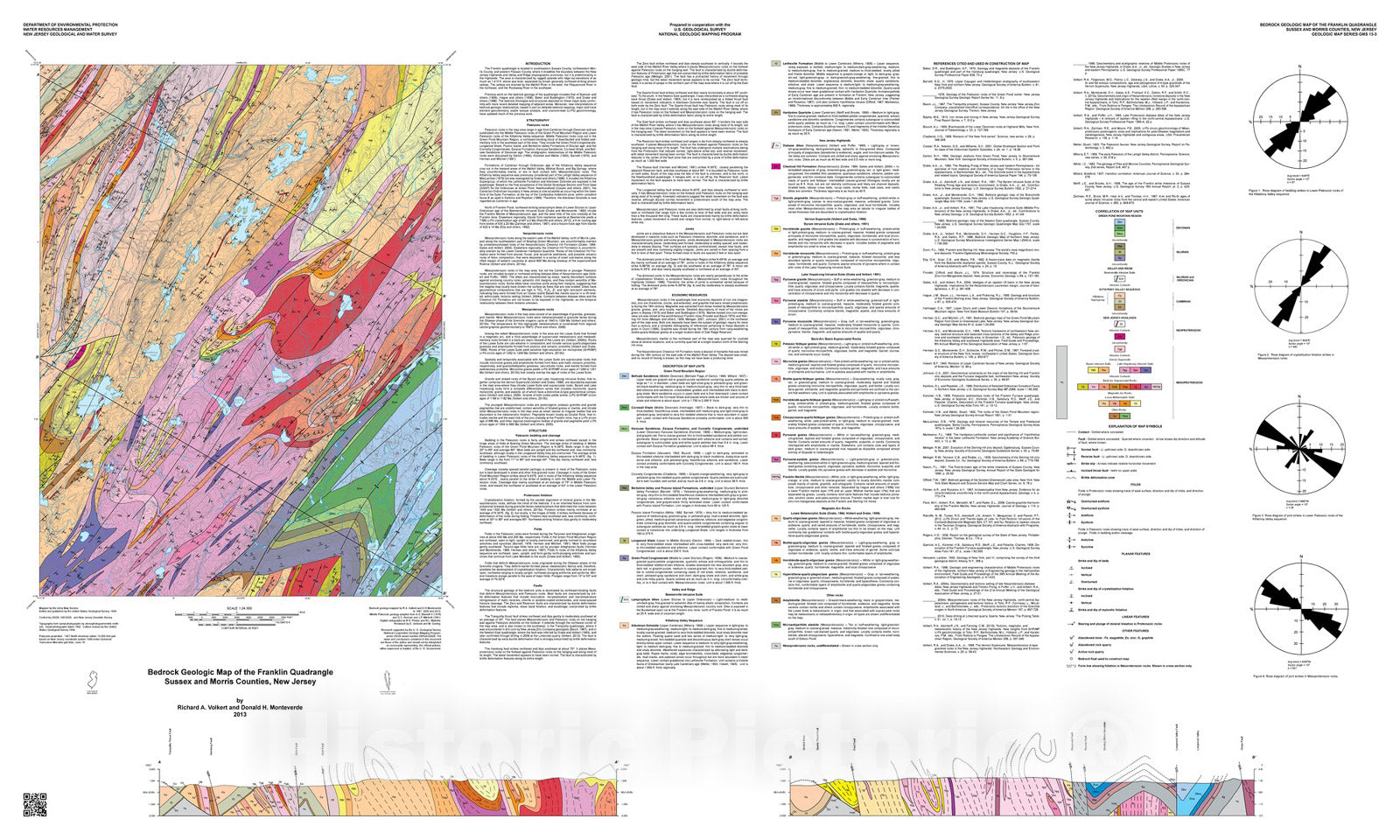 Map : Bedrock geologic map of the Franklin quadrangle, Sussex and Morris counties, New Jersey, 2013 Cartography Wall Art :