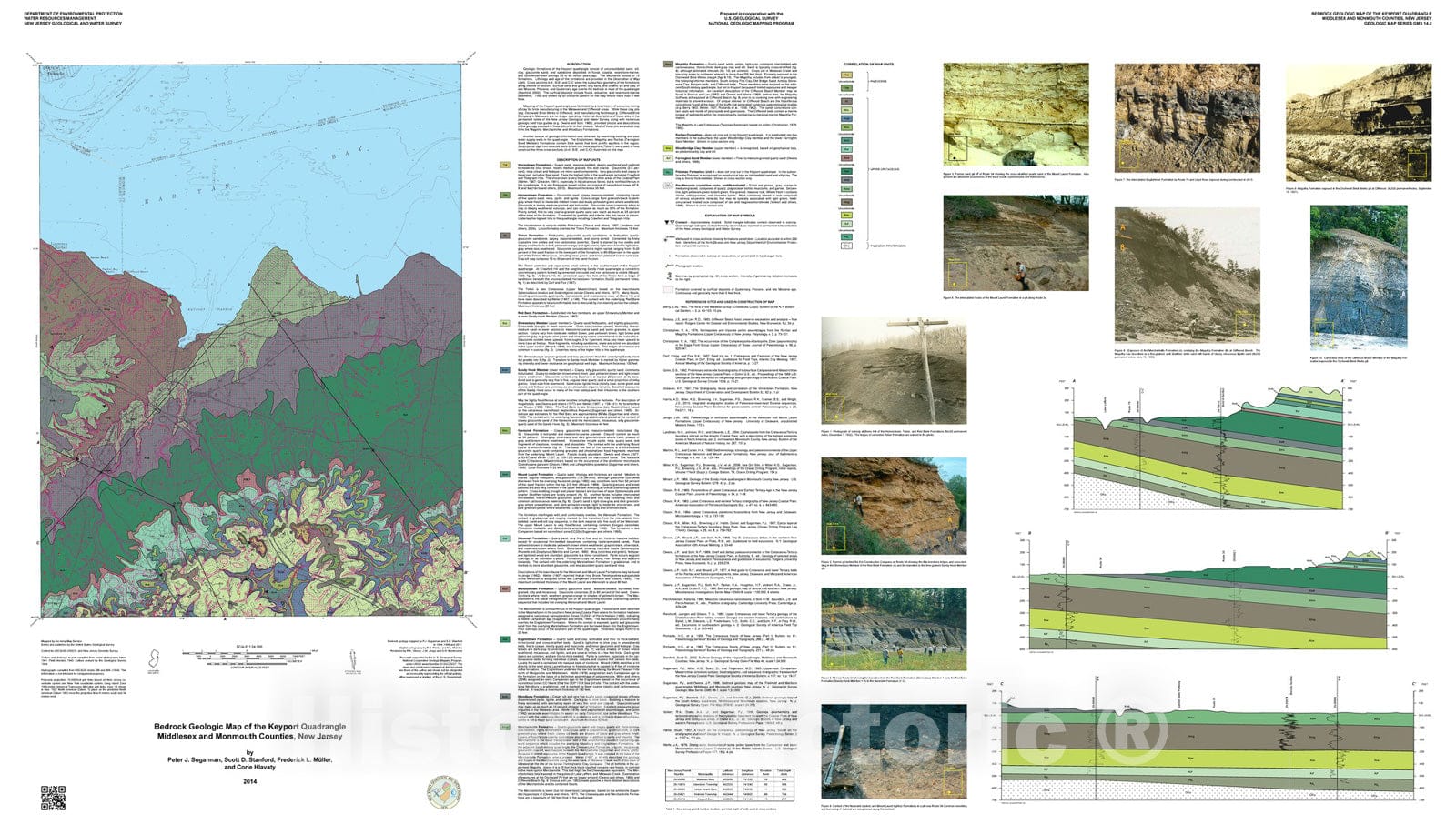 Map : Bedrock geologic map of the Keyport quadrangle, Middlesex and Monmouth counties, New Jersey, 2014 Cartography Wall Art :