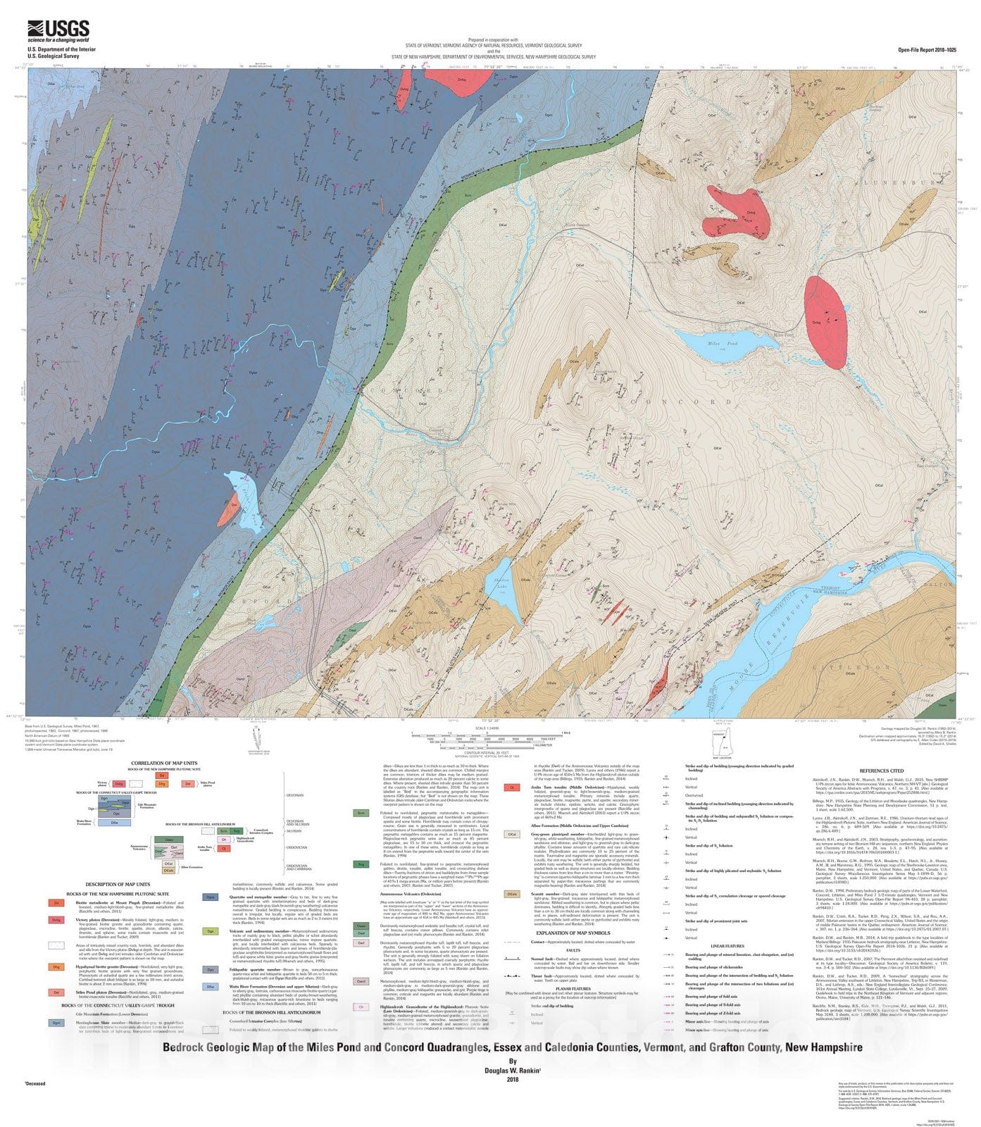 Map : Bedrock geologic map of the Miles Pond and Concord quadrangles, Essex and Caledonia Counties, Vermont, and Grafton County, New Hampshire, 2018 Cartography Wall Art :