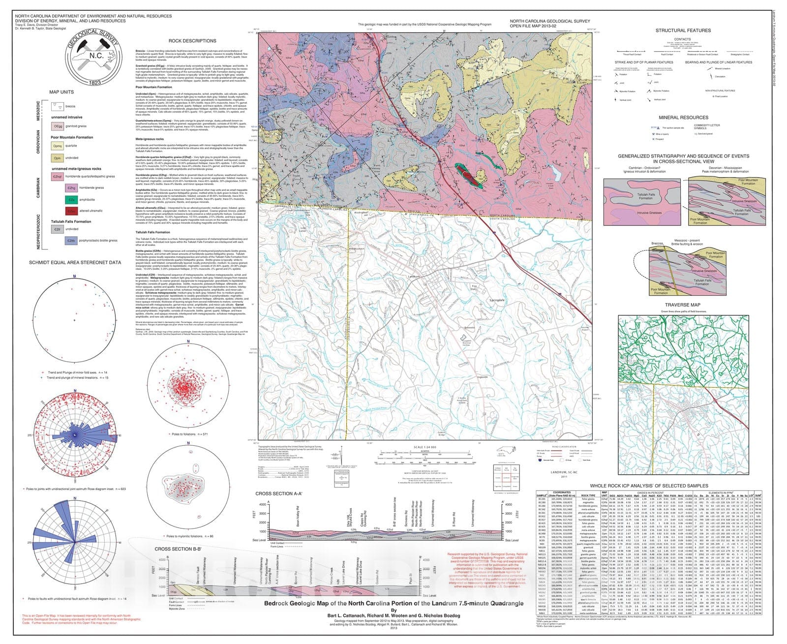 Map : Bedrock Geologic Map of the North Carolina Portion of the Landrum 7.5-minute Quadrangle, 2013 Cartography Wall Art :