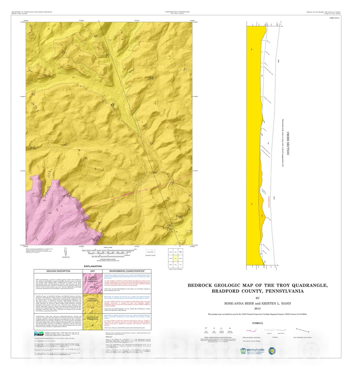 Map : Bedrock geologic map of the Troy quadrangle, Bradford County, Pennsylvania, 2013 Cartography Wall Art :
