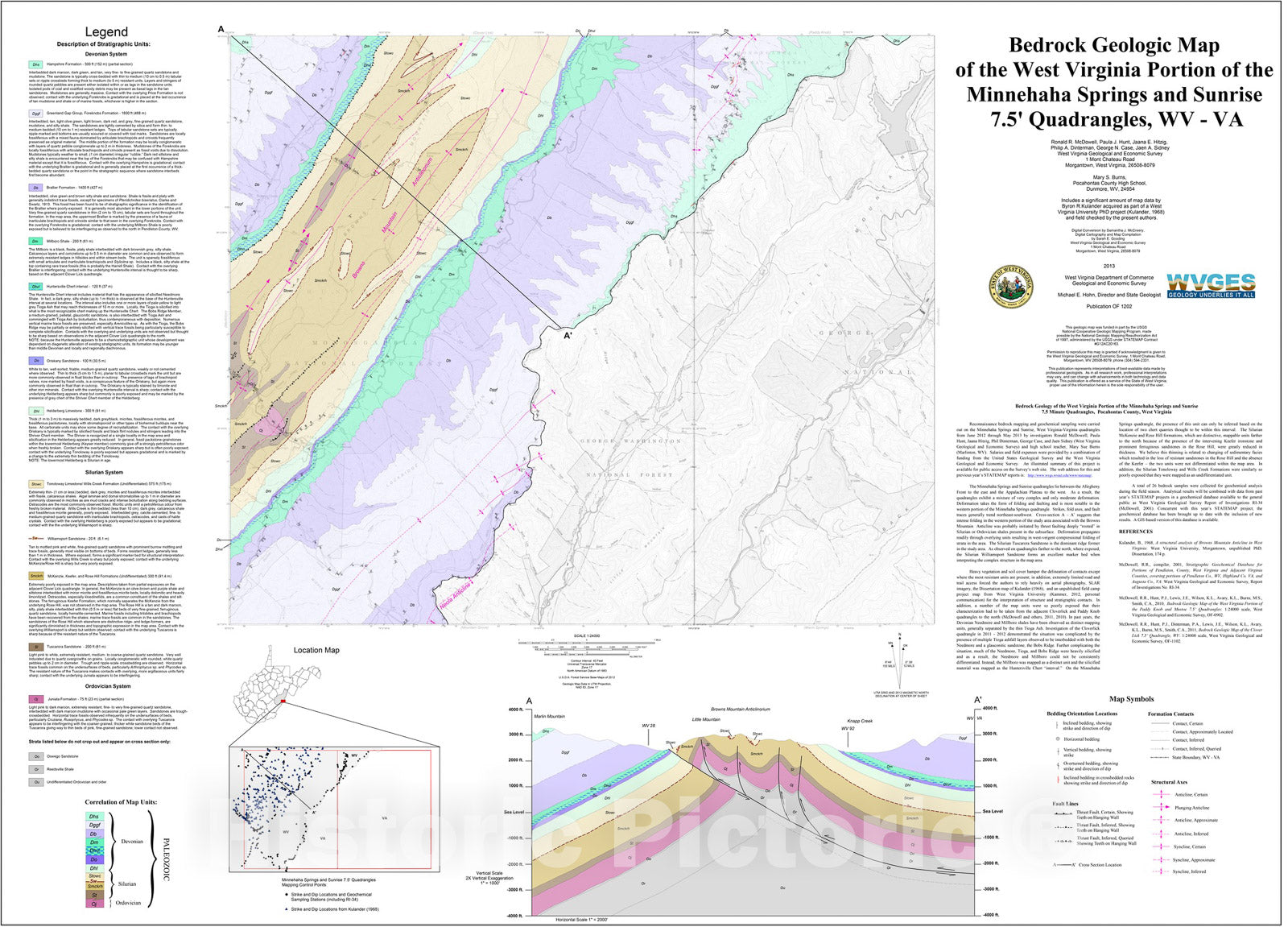 Map : Bedrock Geologic Map of the West Virginia Portion of the Minnehaha Springs and Sunrise 7.5' Quadrangles, WV-VA, 2013 Cartography Wall Art :