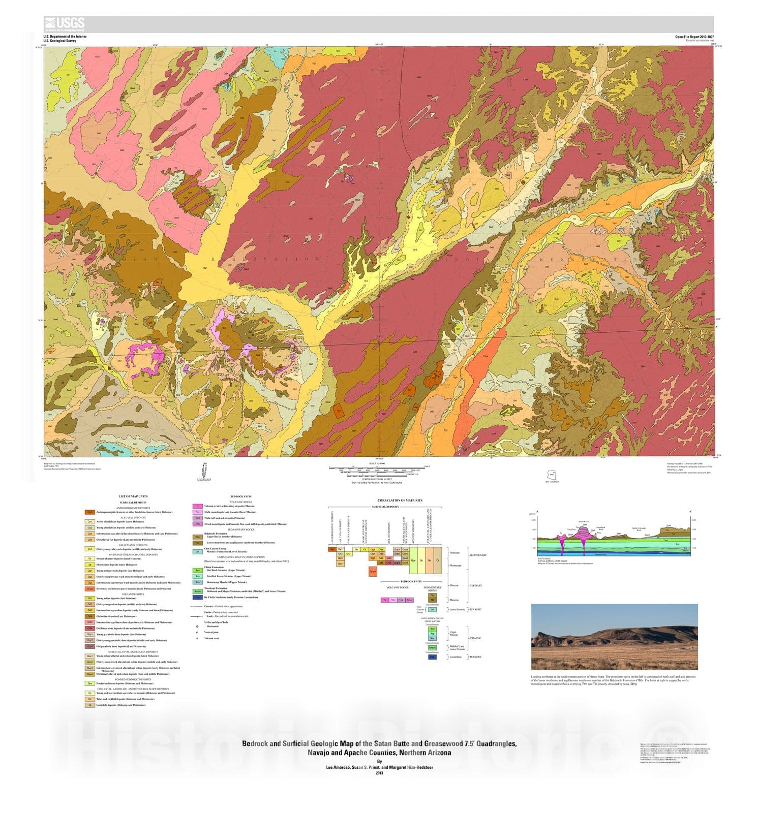 Map : Bedrock and surficial geologic map of the Satan Butte and Greasewood 7.5' quadrangles, Navajo and Apache Counties, northern Arizona, 2013 Cartography Wall Art :