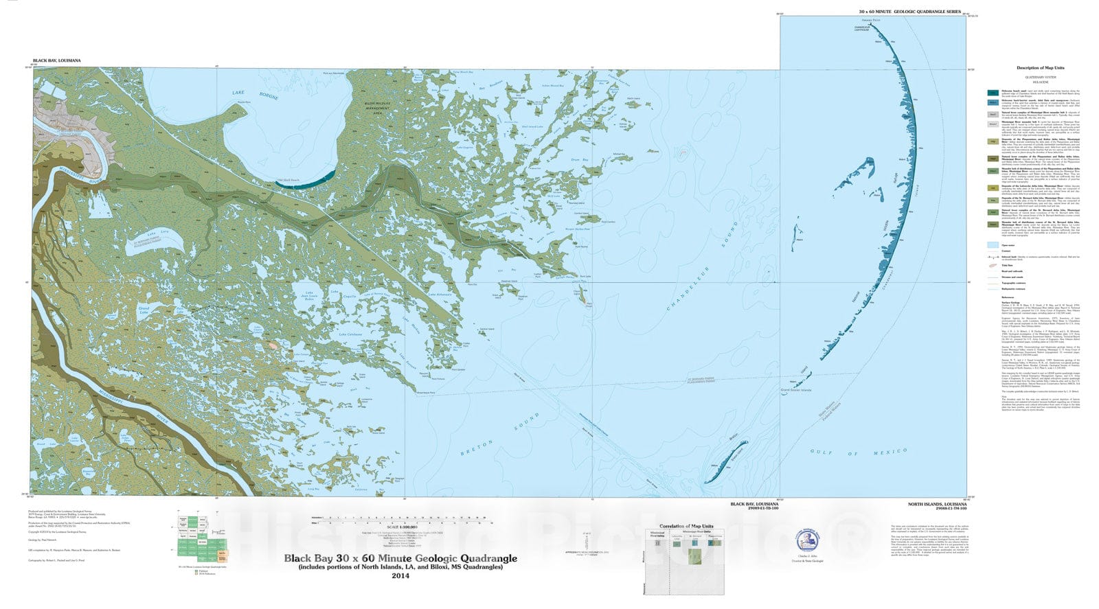 Map : Black Bay thirty x sixty minute geologic quadrangle (includes portions of North Islands, LA, and Biloxi, MS quadrangles), 2014 Cartography Wall Art :
