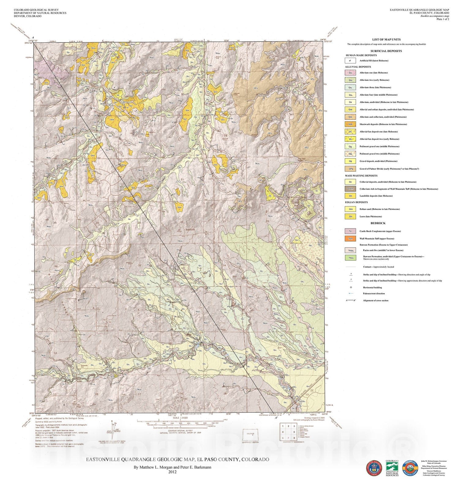 Map : Eastonville Quadrangle Geologic Map, El Paso and Elbert Counties, Colorado, 2012 Cartography Wall Art :