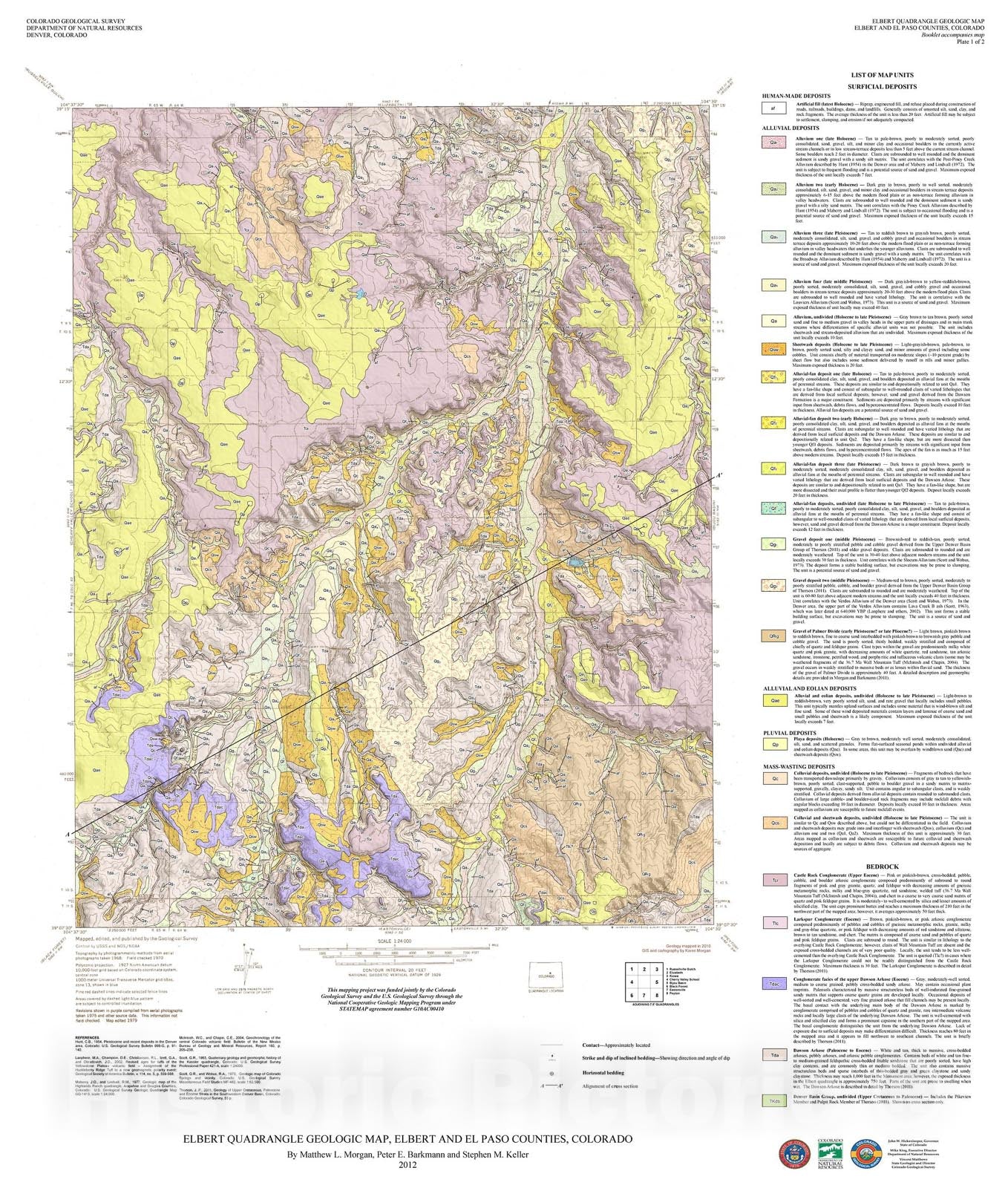 Map : Elbert Quadrangle Geologic Map, Elbert and El Paso Counties, Colorado, 2012 Cartography Wall Art :