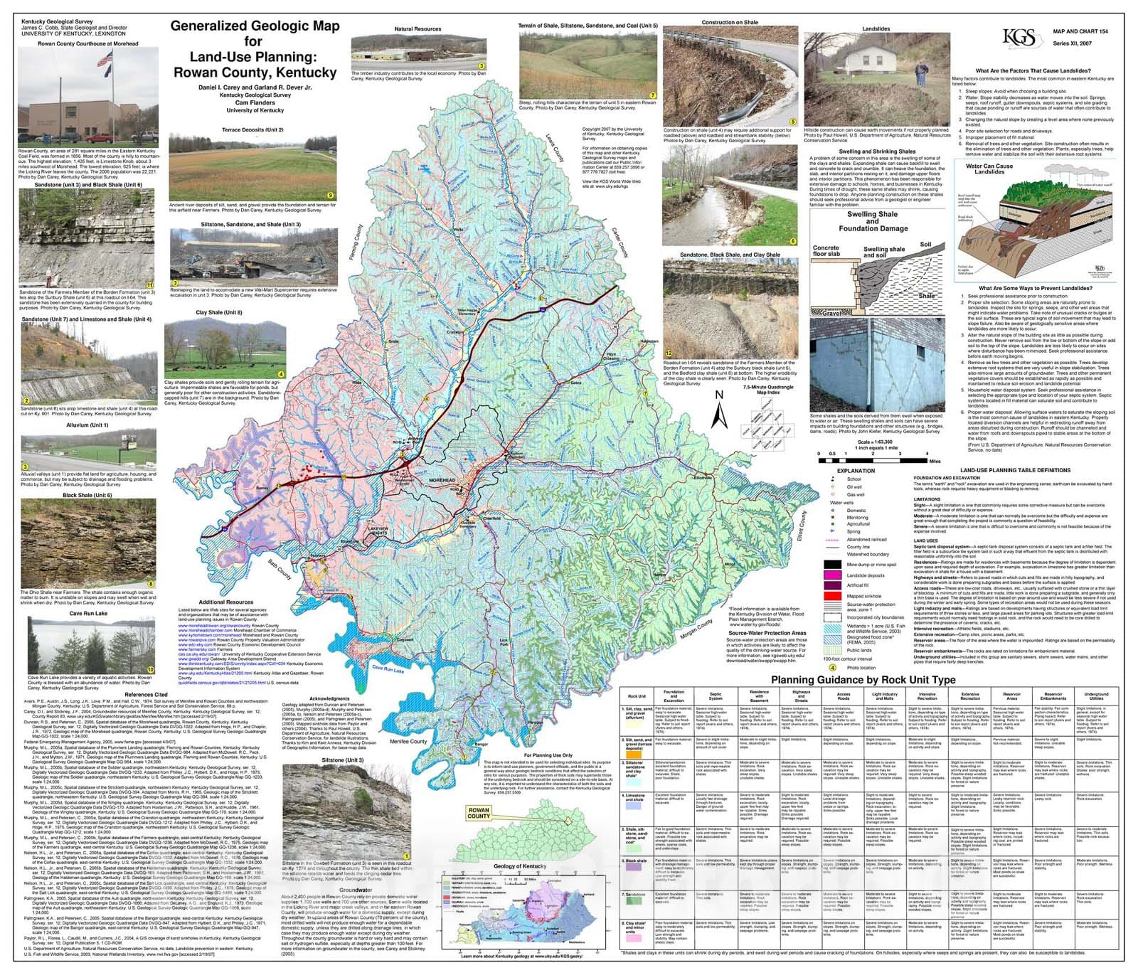 Map : Generalized geologic map for land-use planning: Rowan County, Kentucky, 2007 Cartography Wall Art :