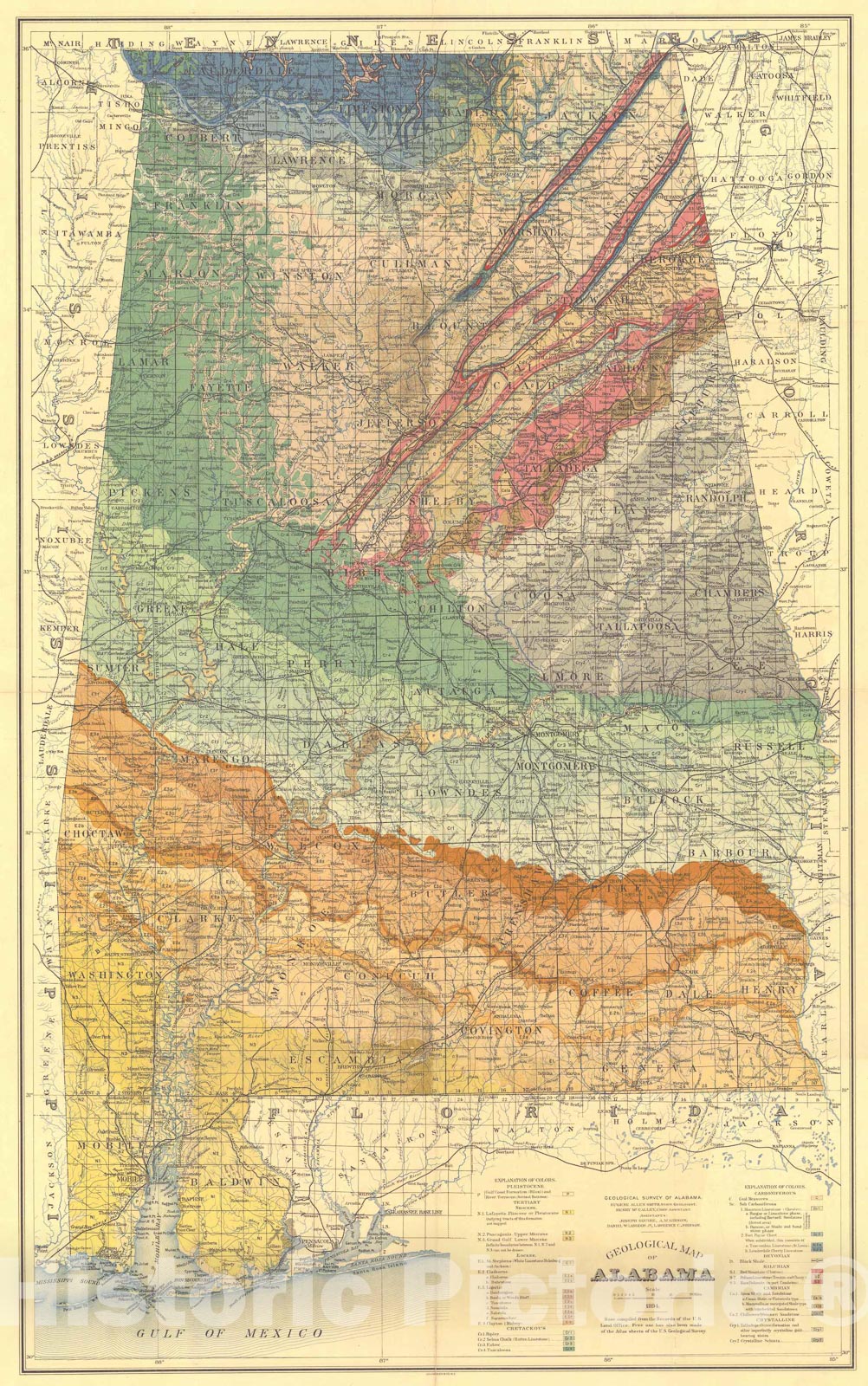 Map : Geologic map of Alabama, with explanatory chart, 1894 Cartography Wall Art :
