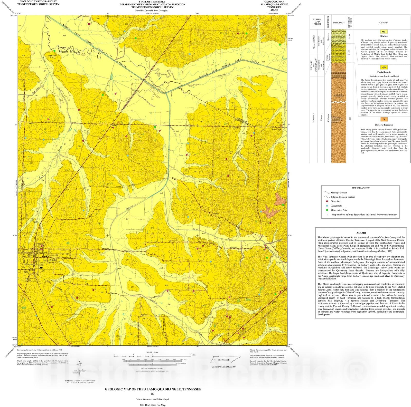 Map : Geologic map of the Alamo quadrangle, Tennessee, 2013 Cartography Wall Art :