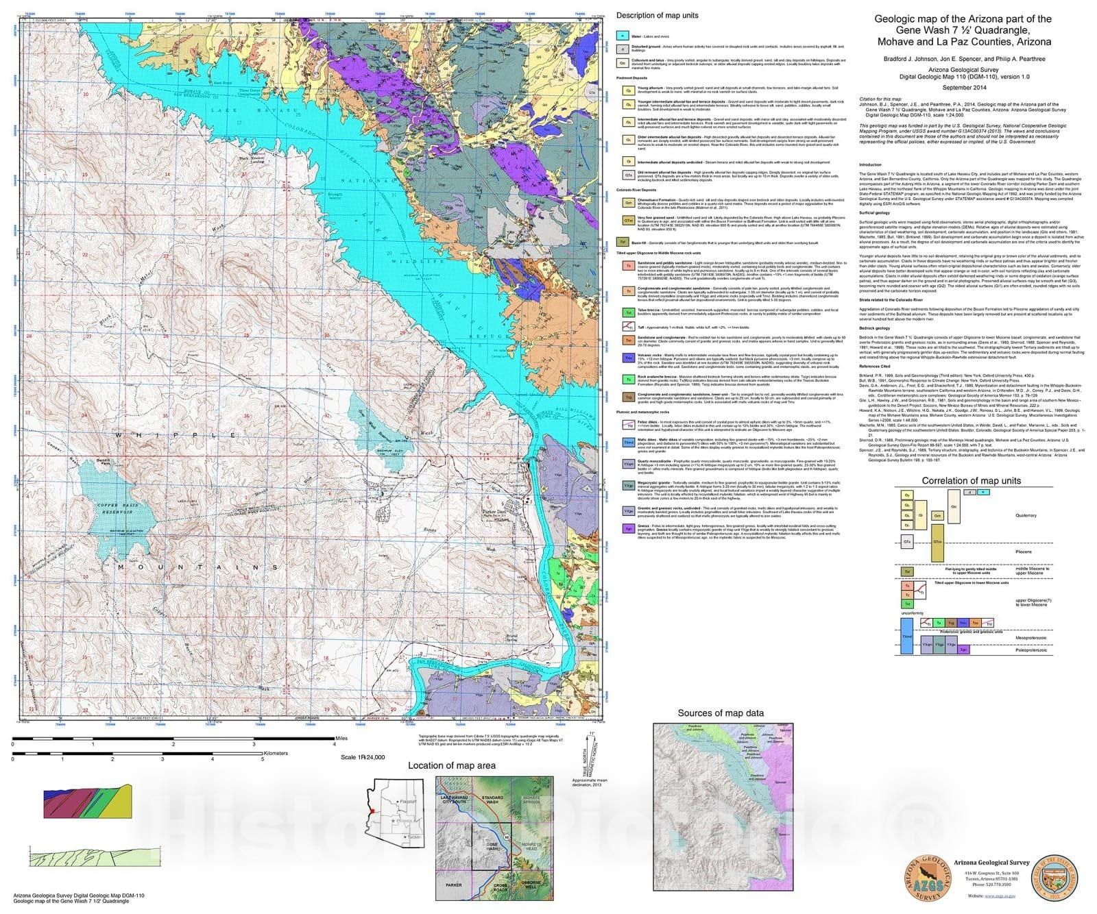 Map : Geologic map of the Arizona part of the Gene Wash seven 1/2' Quadrangle, Mohave and La Paz Counties, Arizona, 2015 Cartography Wall Art :