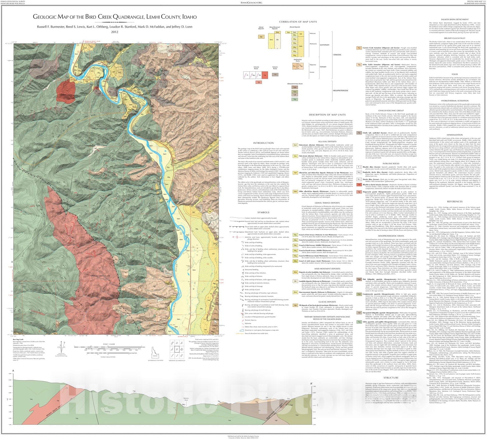 Map : Geologic Map of the Bird Creek Quadrangle, Lemhi County, Idaho, 2012 Cartography Wall Art :