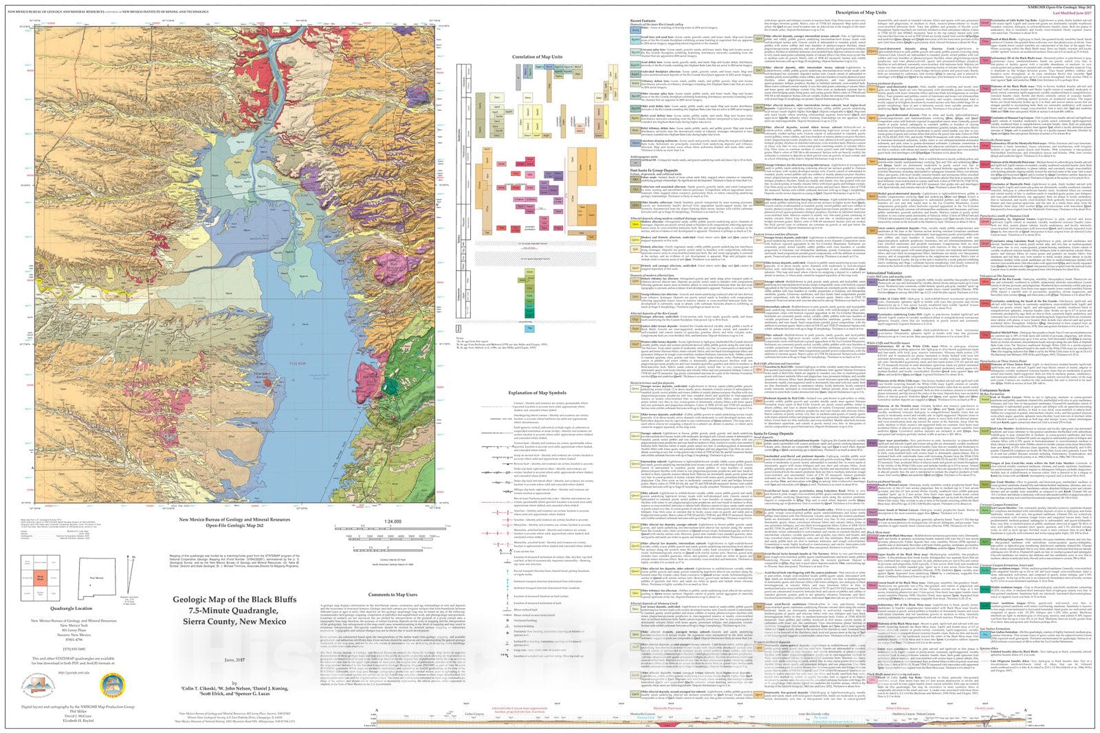 Map : Geologic Map of the Black Bluffs 7.5-Minute Quadrangle, Sierra County, New Mexico, 2017 Cartography Wall Art :
