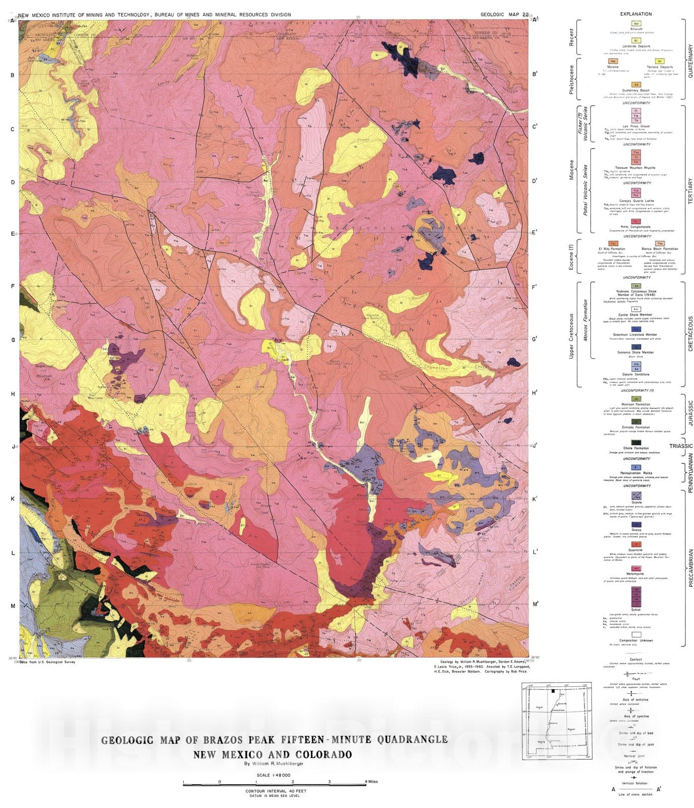 Map : Geologic map of Brazos Peak fifteen-minute quadrangle, New Mexico and Colorado, 1968 Cartography Wall Art :