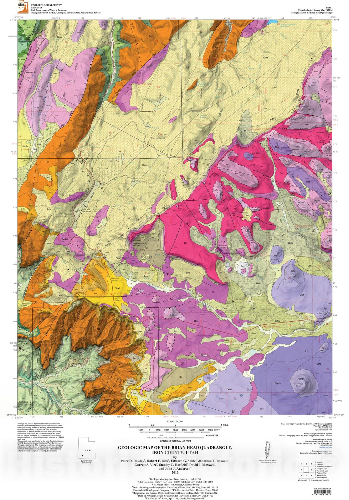 Map : Geologic map of the Brian Head quadrangle, Iron County, Utah, 2013 Cartography Wall Art :