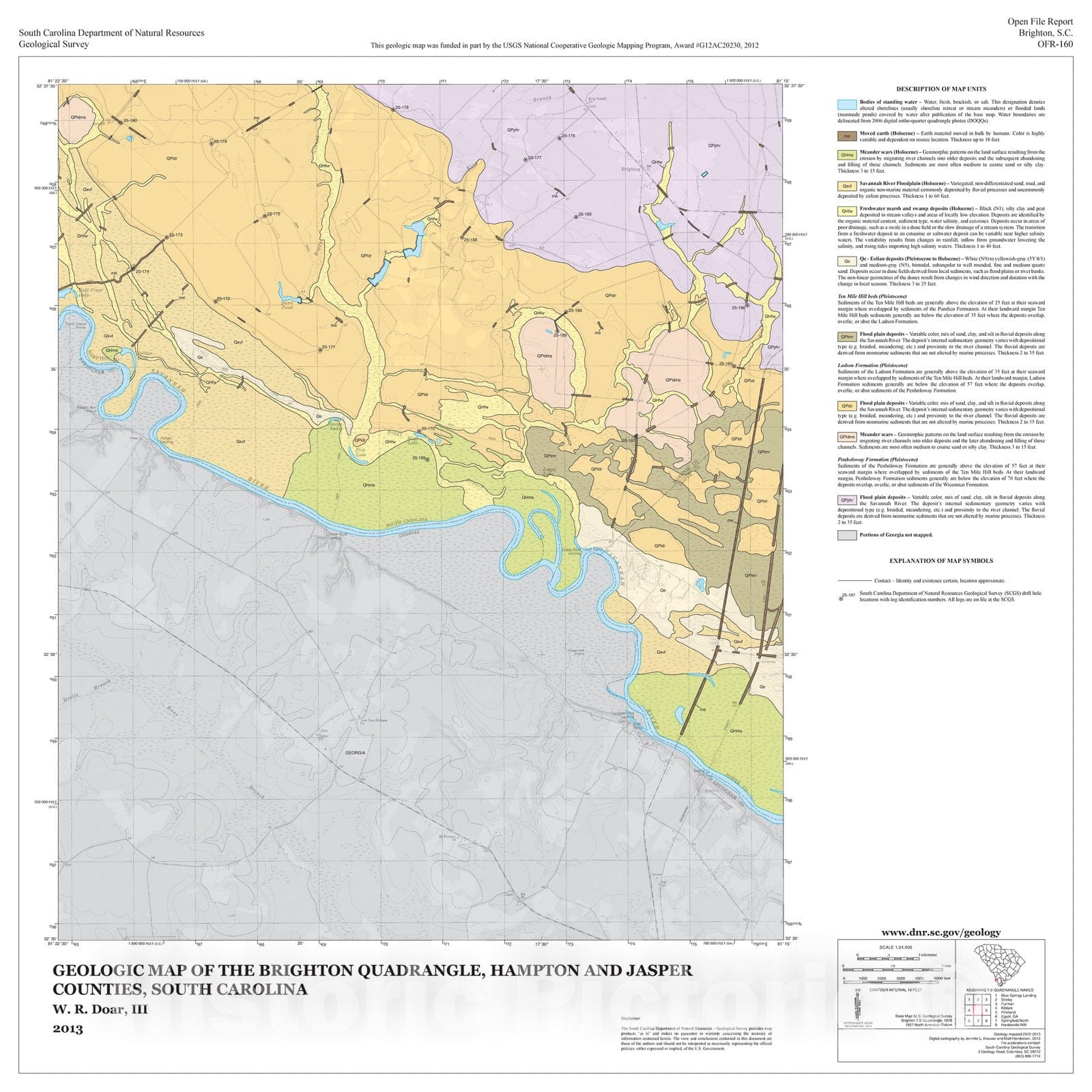 Map : Geologic Map of the Brighton Quadrangle, Hampton and Jasper Counties, South Carolina, 2013 Cartography Wall Art :