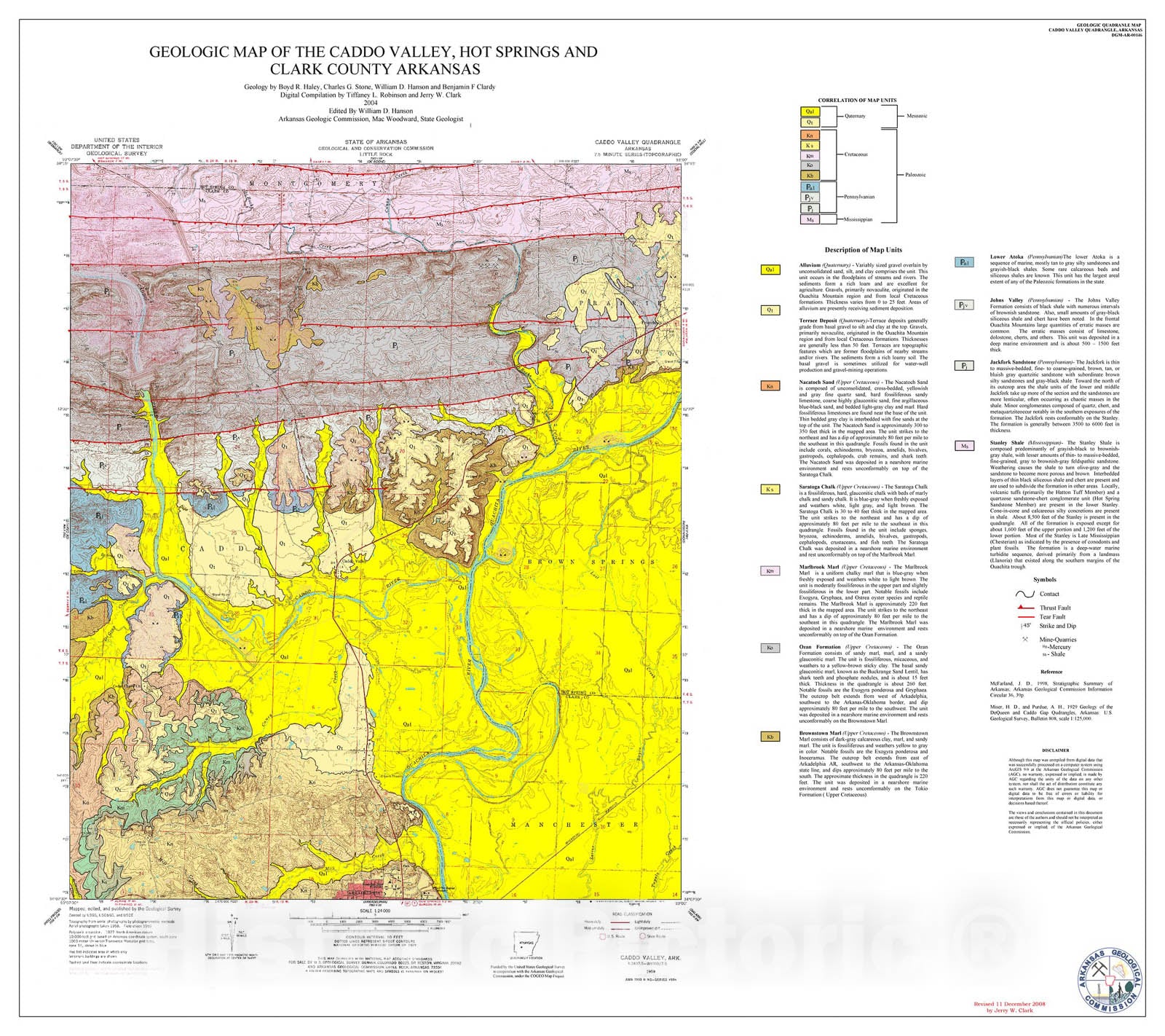 Map : Geologic map of the Caddo Valley Quadrangle, Hot Spring and Clark counties, Arkansas, 2004 Cartography Wall Art :