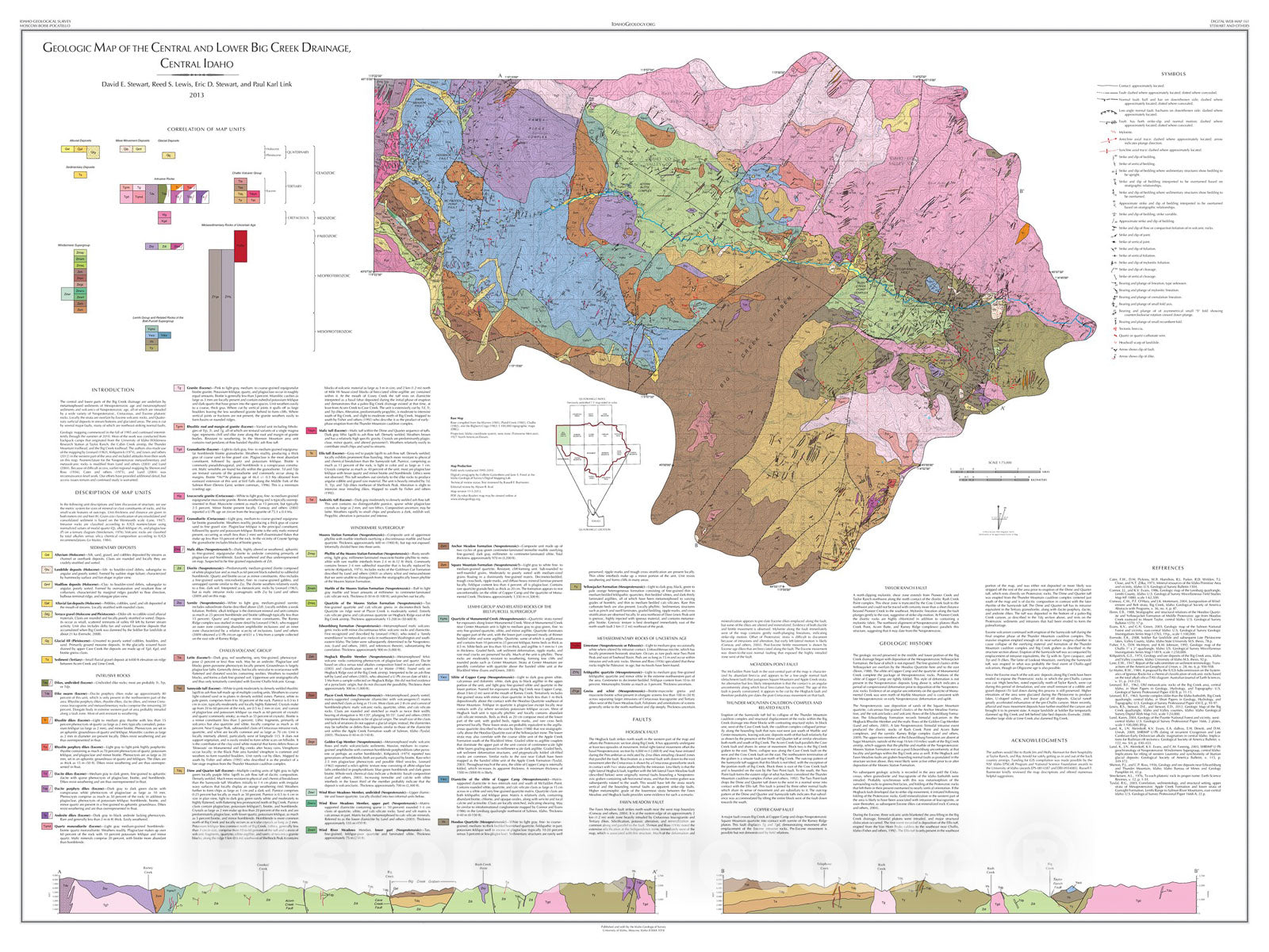 Map : Geologic Map of the Central and Lower Big Creek Drainage, Central Idaho, 2013 Cartography Wall Art :