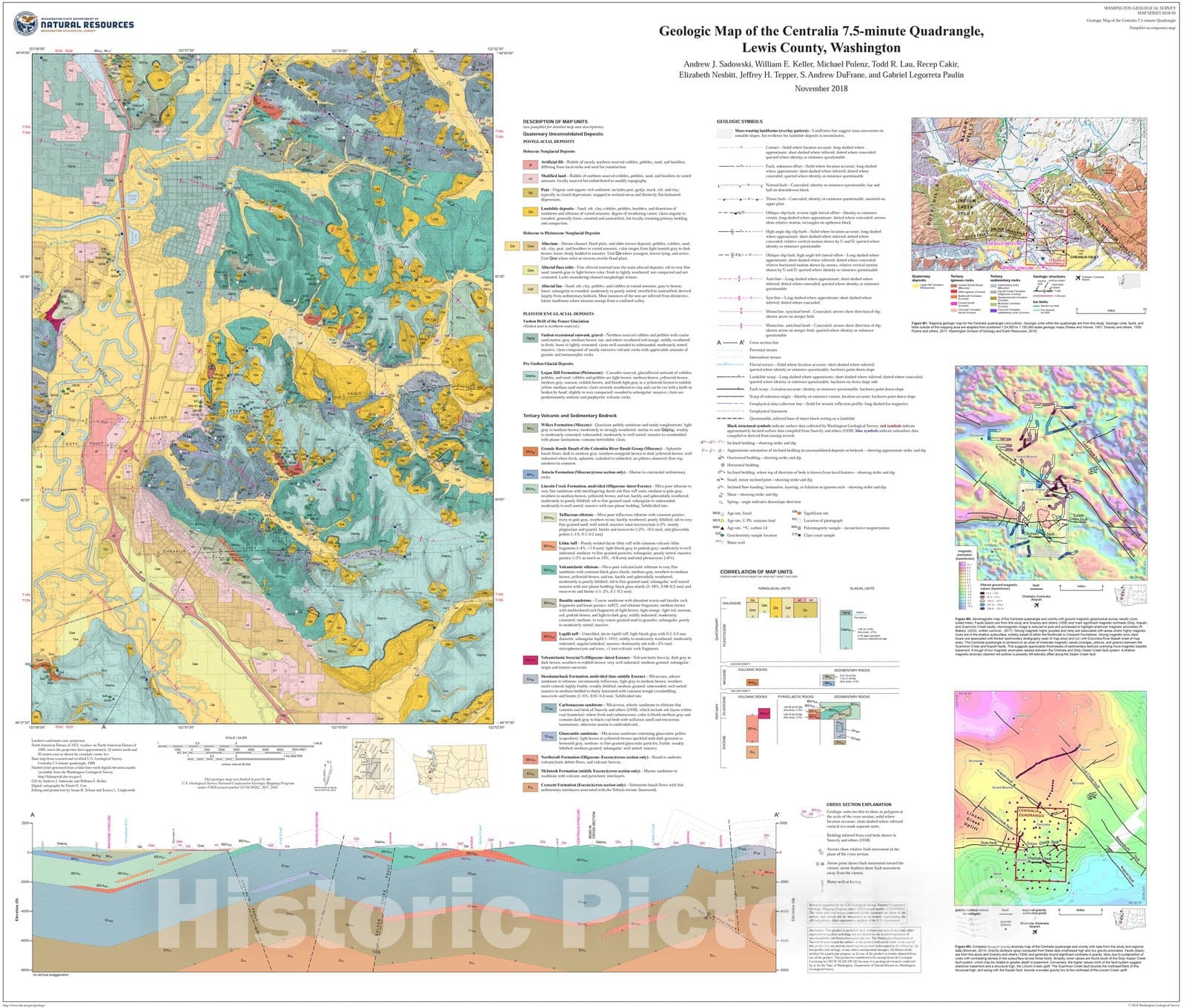 Map : Geologic map of the Centralia 7.5-minute quadrangle, Lewis County, Washington, 2018 Cartography Wall Art :