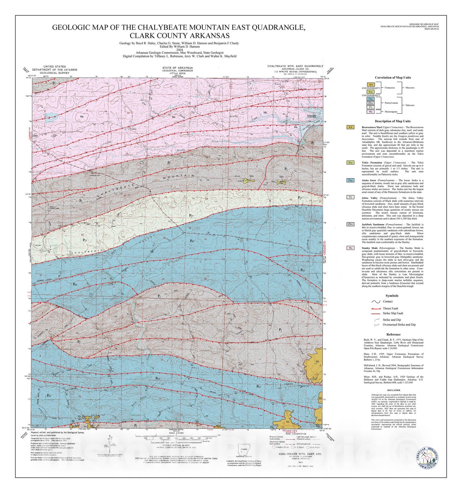 Map : Geologic map of the Chalybeate Mountain East Quadrangle, Clark County, Arkansas, 2004 Cartography Wall Art :