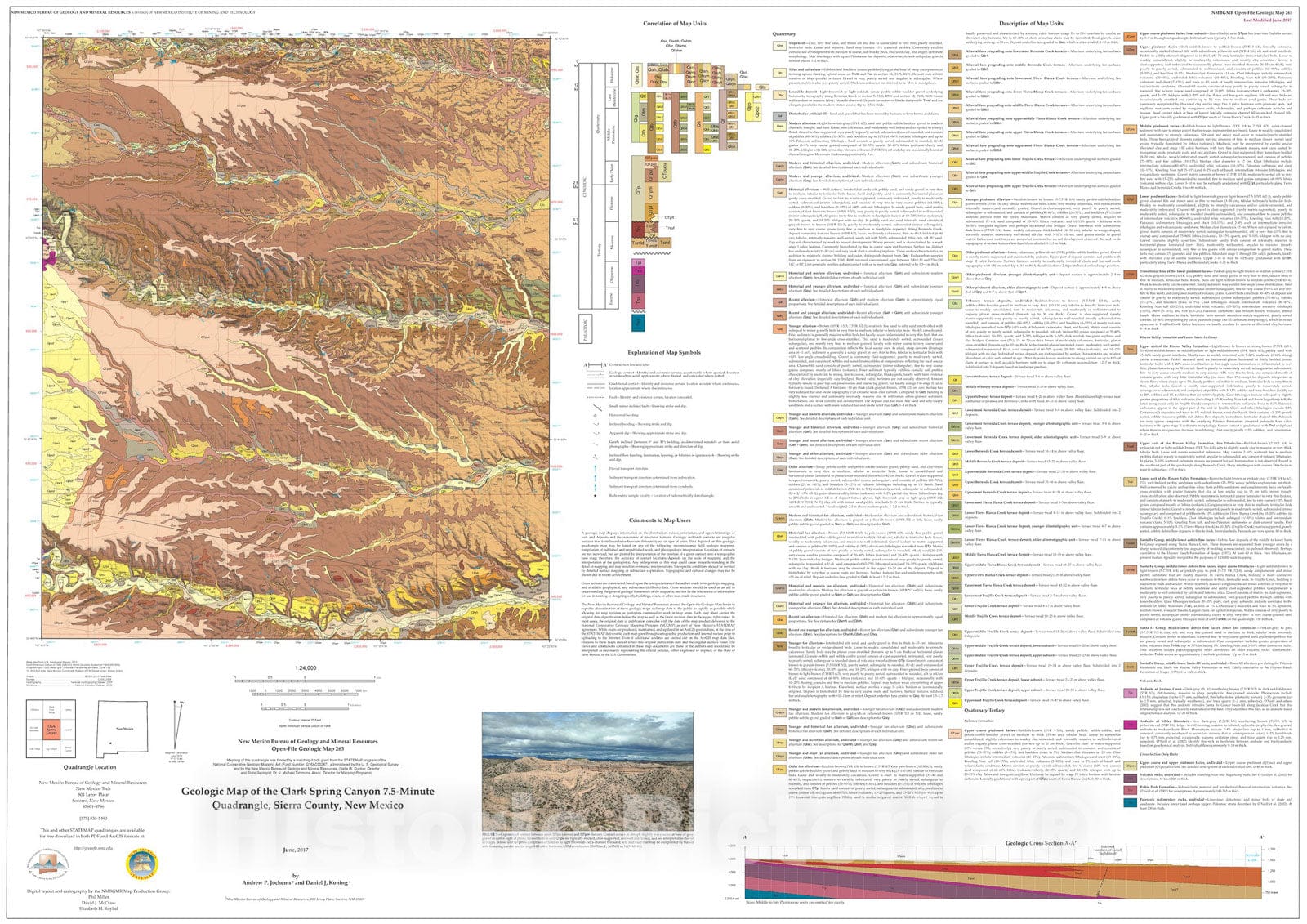 Map : Geologic Map of the Clark Spring Canyon 7.5-Minute Quadrangle, Sierra County, New Mexico, 2017 Cartography Wall Art :