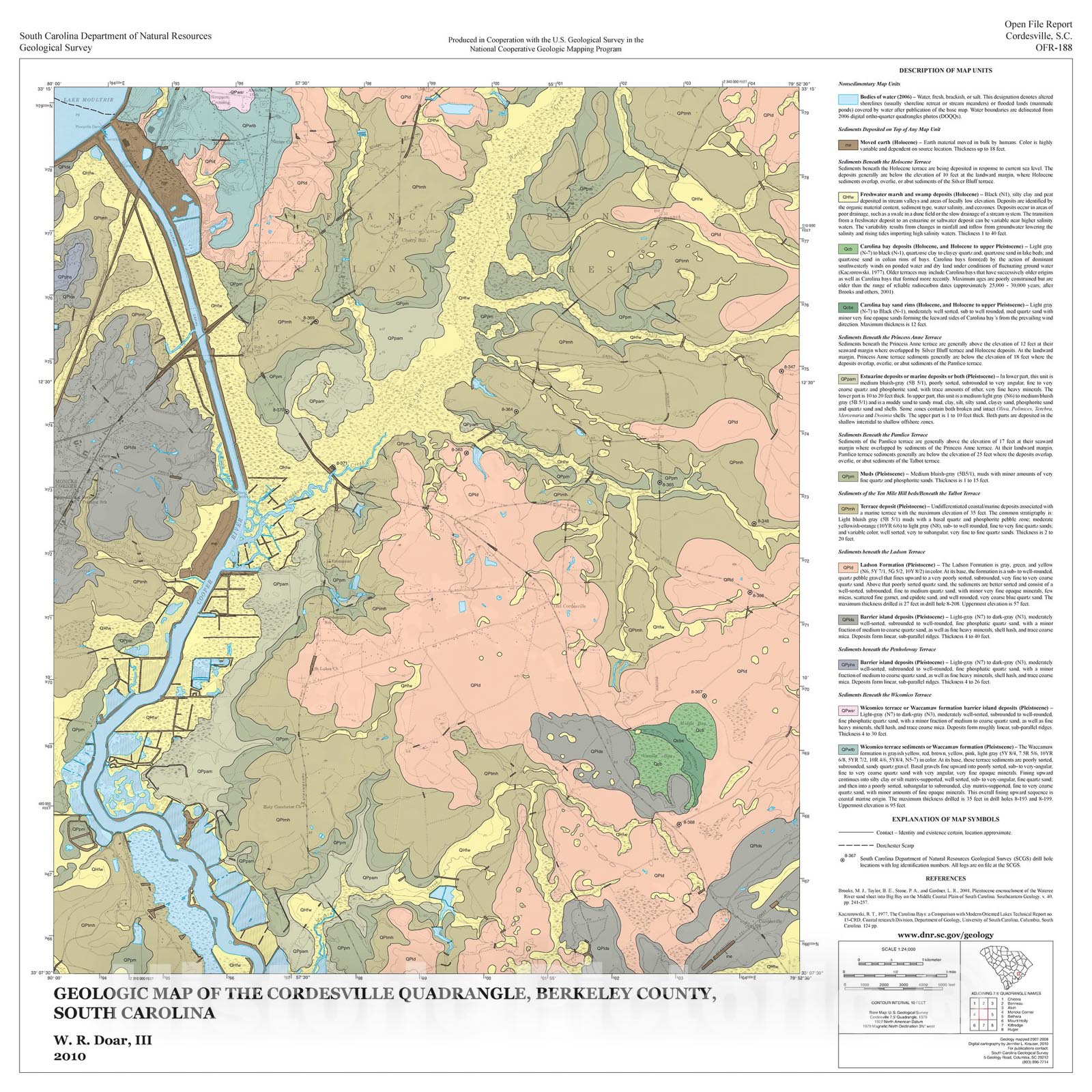 Map : Geologic Map of the Cordesville Quadrangle, Berkeley County, South Carolina, 2010 Cartography Wall Art :