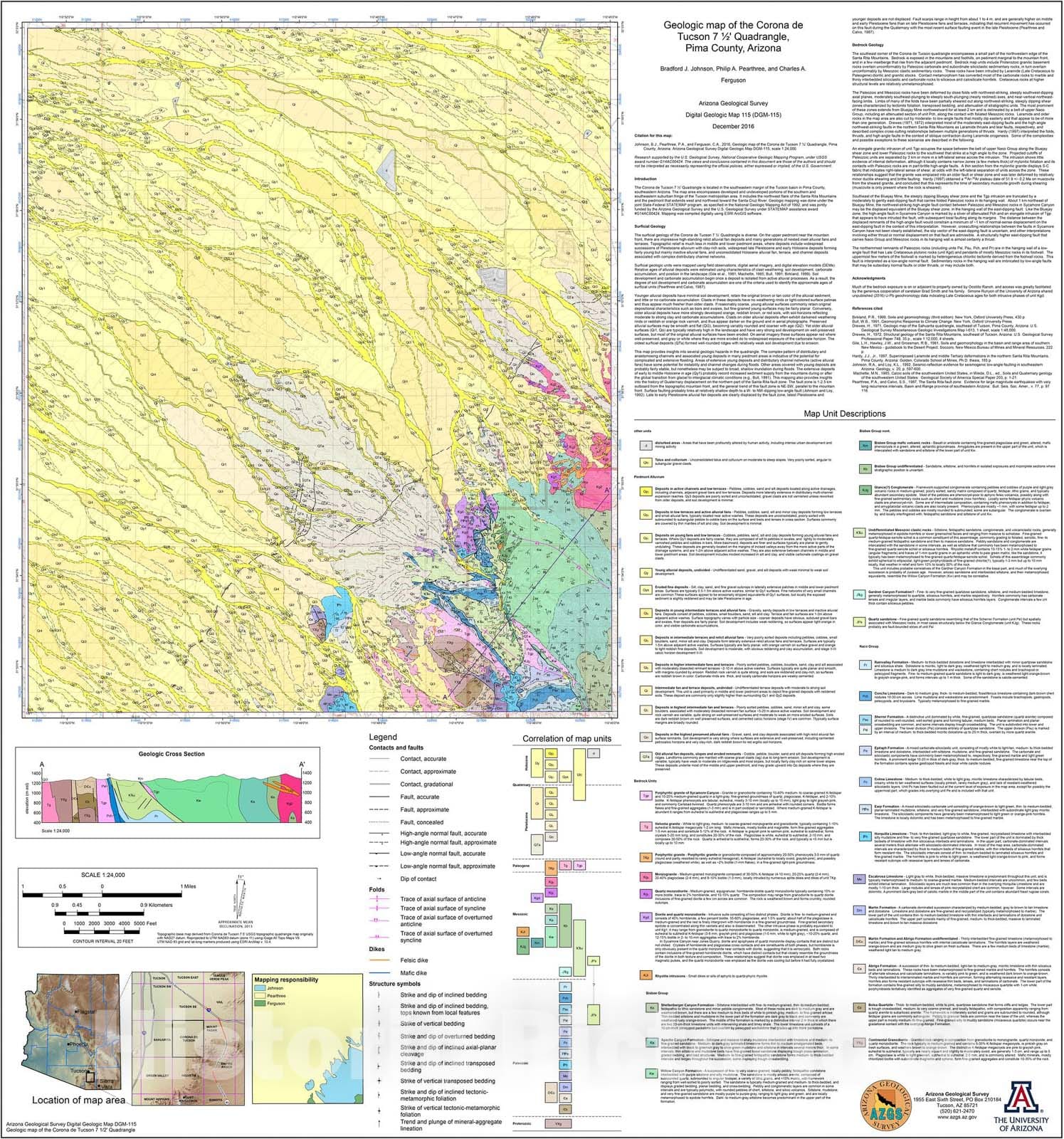 Map : Geologic Map of the Corona de Tucson seven 1/2' Quadrangle, Pima County, Arizona, 2016 Cartography Wall Art :