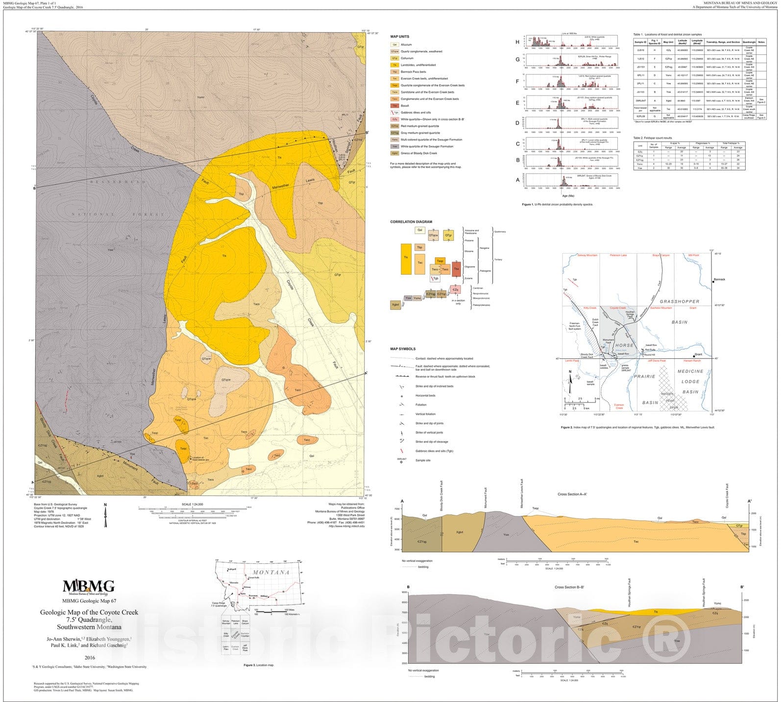 Map : Geologic map of the Coyote Creek 7.5' quadrangle, southwest Montana, 2017 Cartography Wall Art :