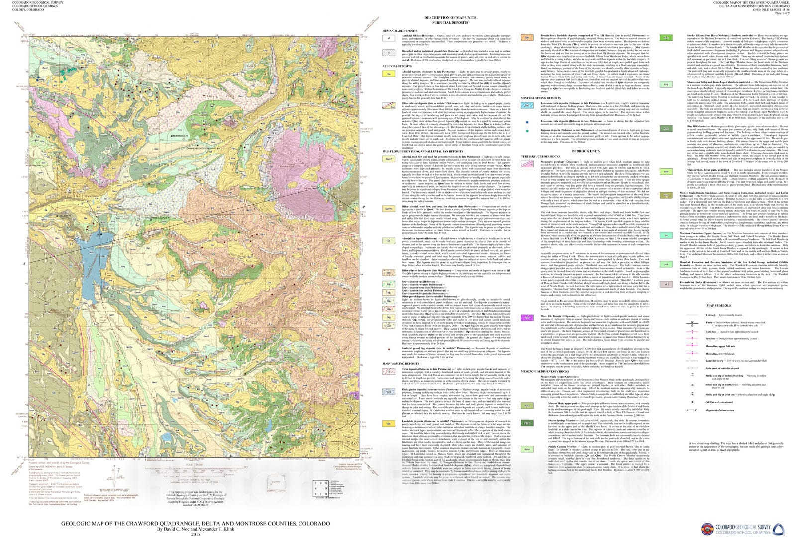 Map : Geologic Map of the Crawford Quadrangle, Delta and Montrose Counties, Colorado, 2015 Cartography Wall Art :